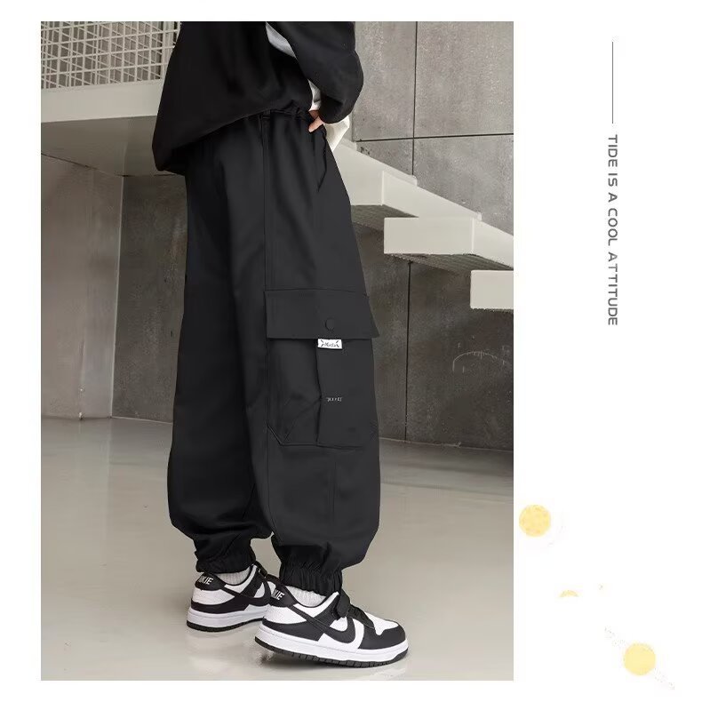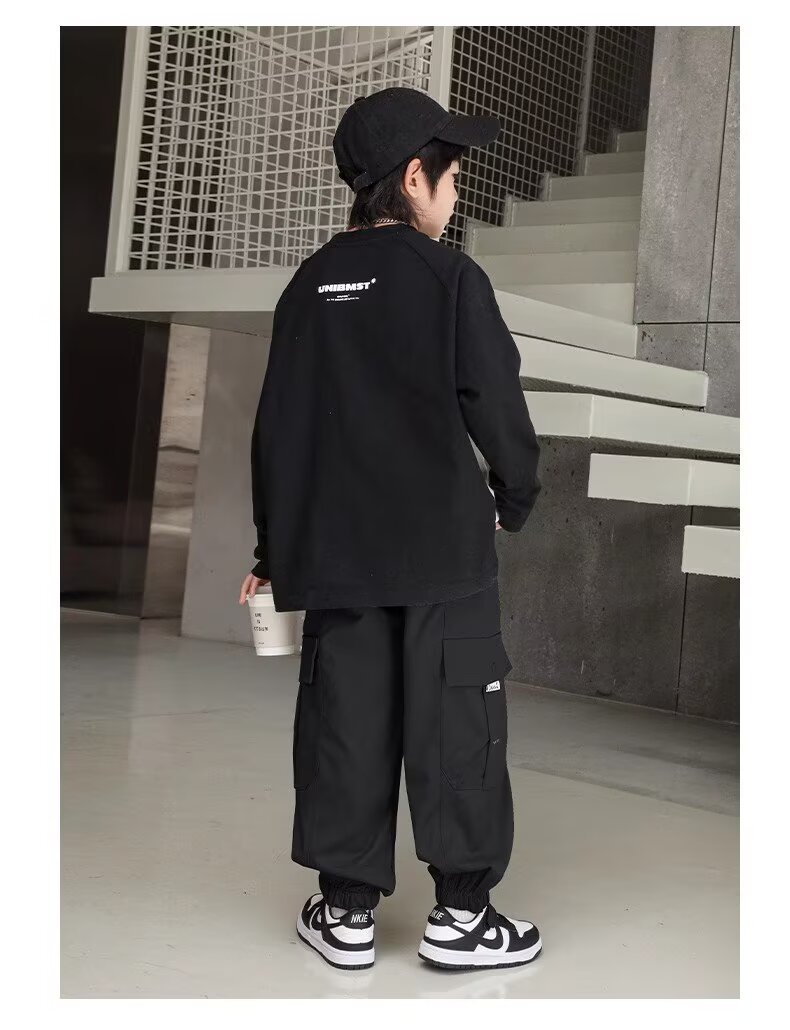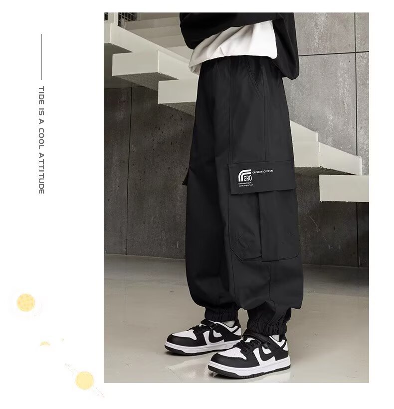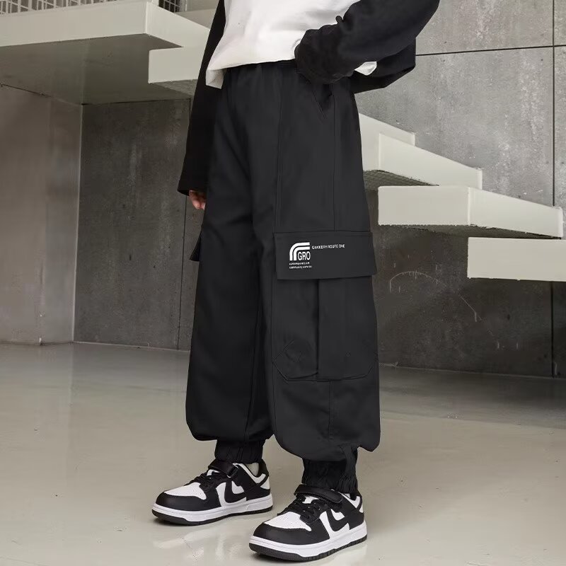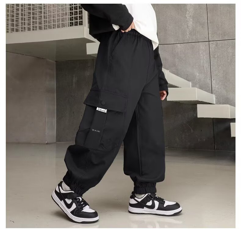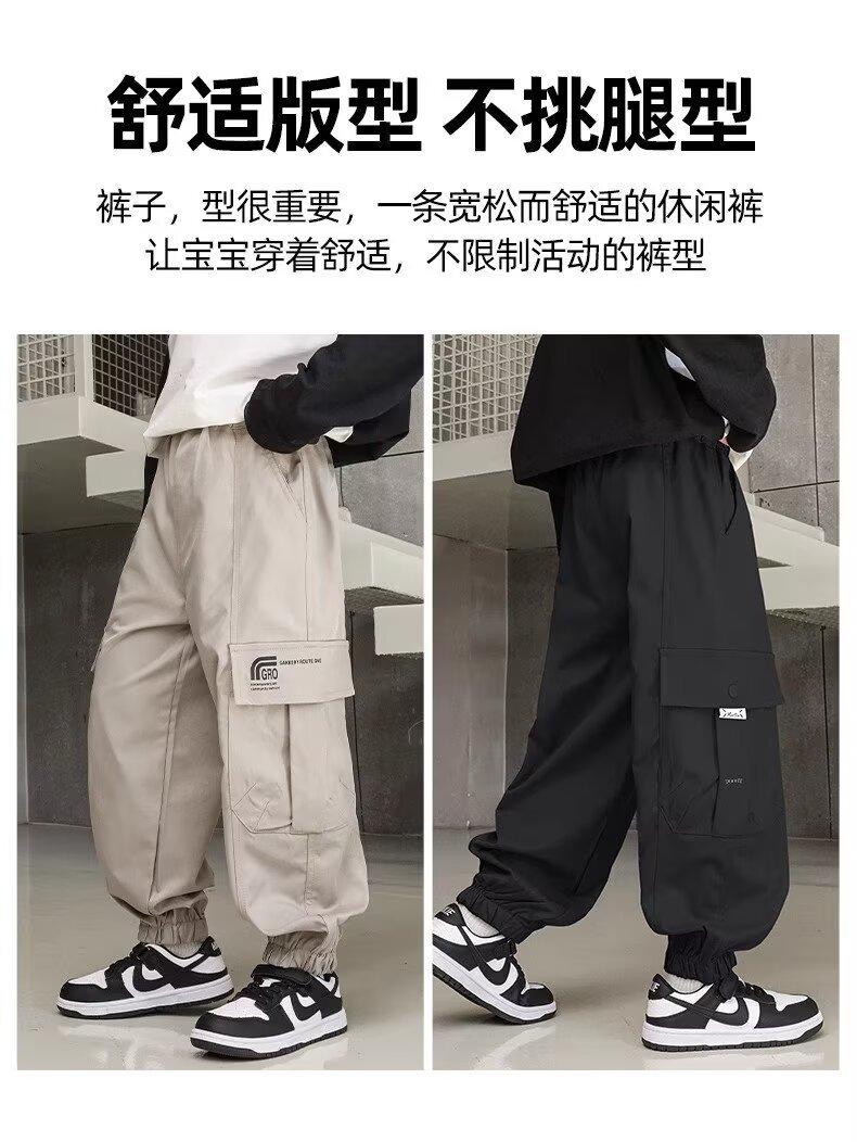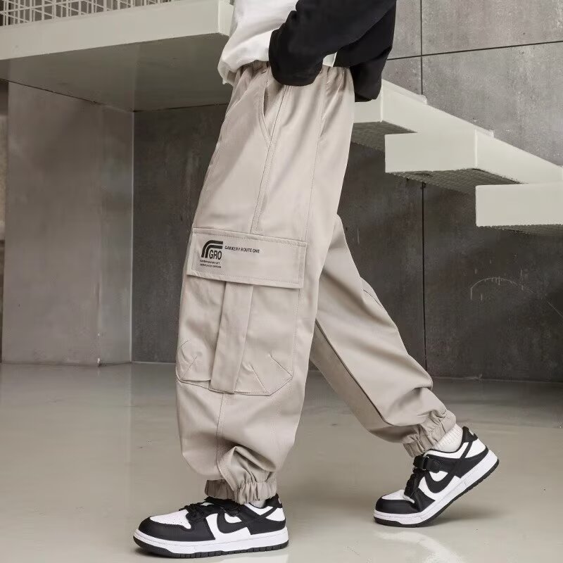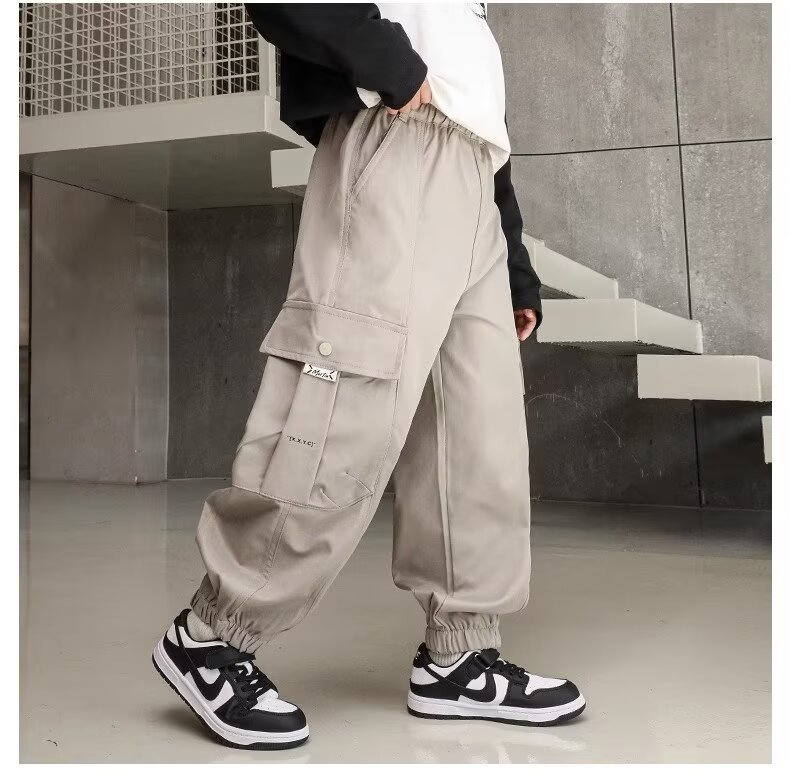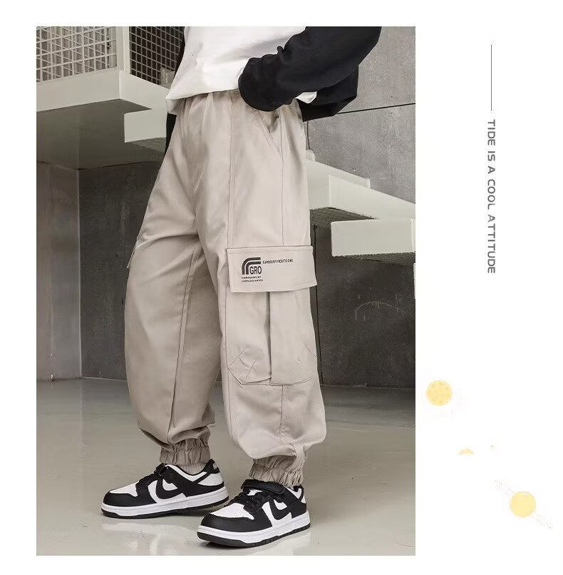 소년 스포츠 바지 봄과 가을 운동복 소년 스트레이트 배럴 와이드 레그 작업복 바지 봄 큰 어린이 캐주얼 바지