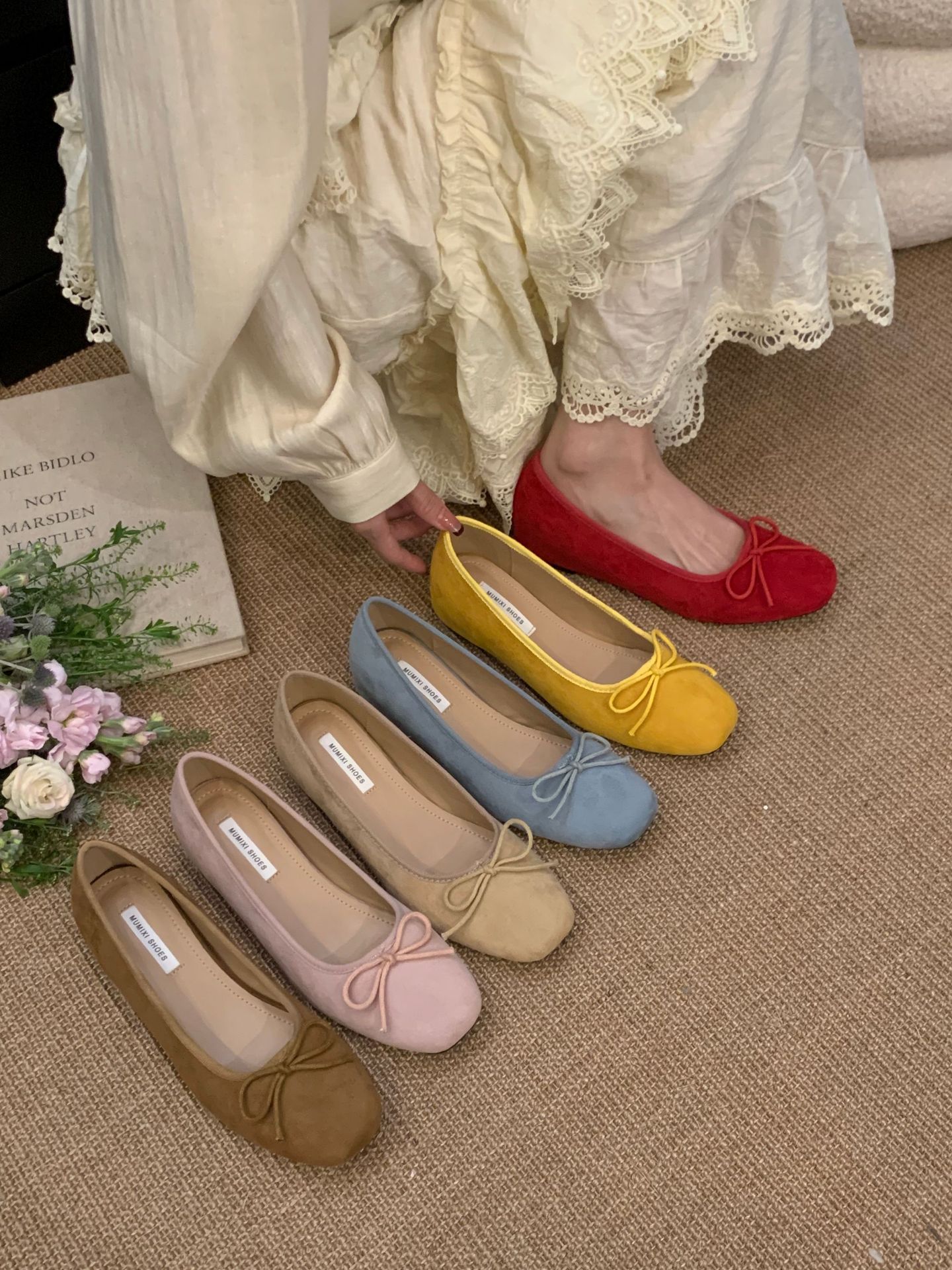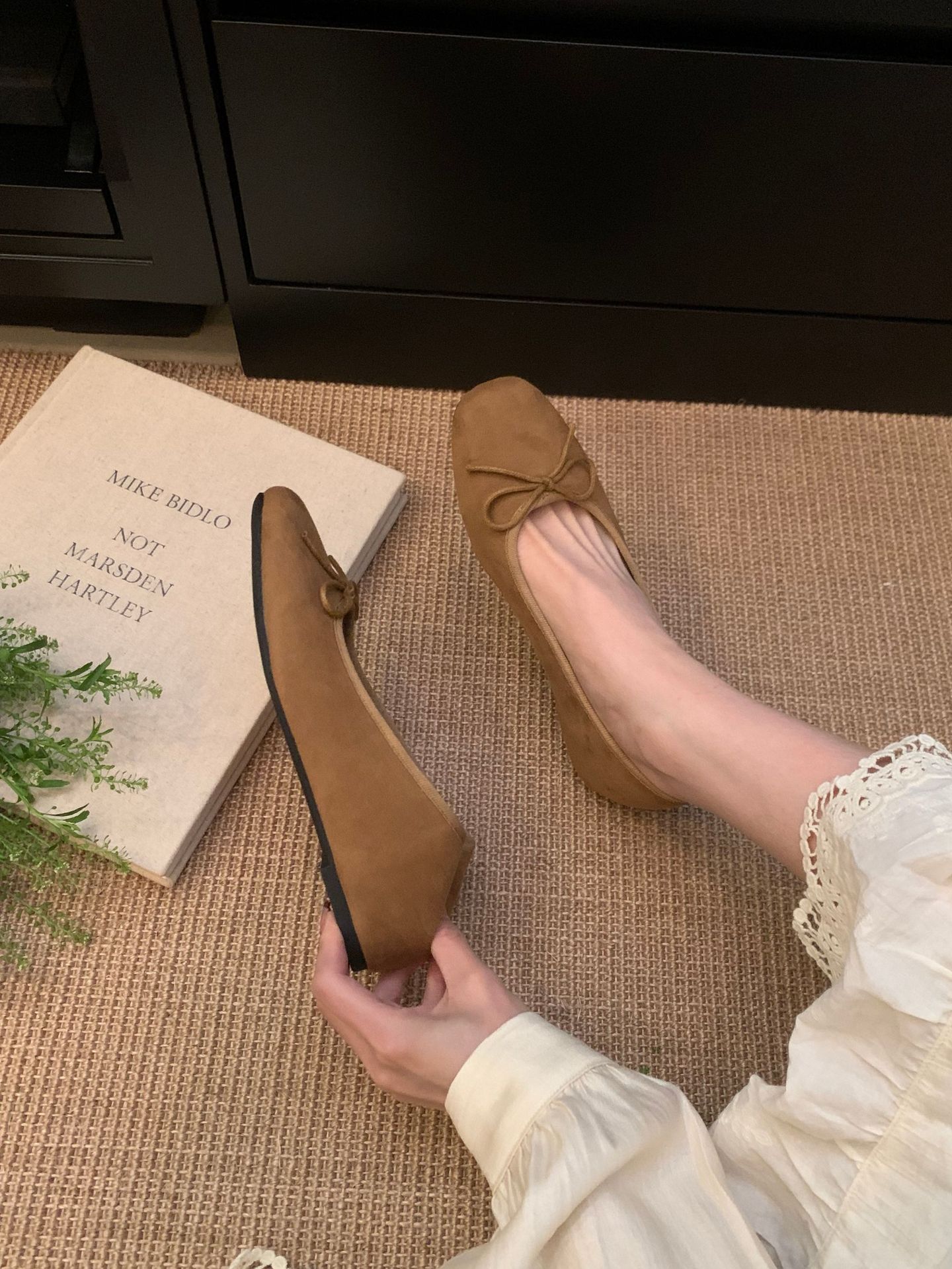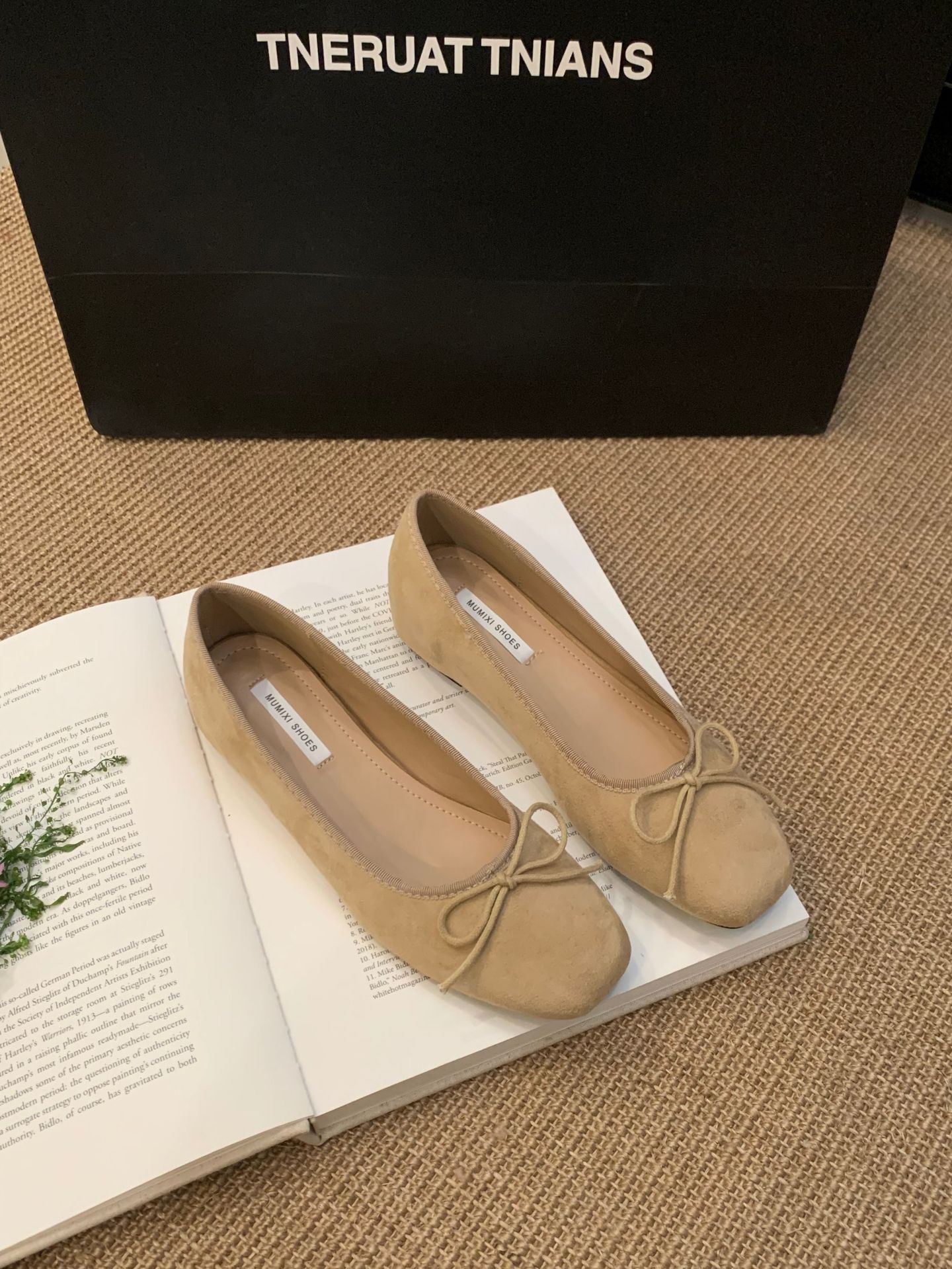 내부 높이 스웨이드 스퀘어 헤드 밀크 신발 스퀘어 헤드 여성 신발 2025 봄 검은 발레 활 신발스토어 가기