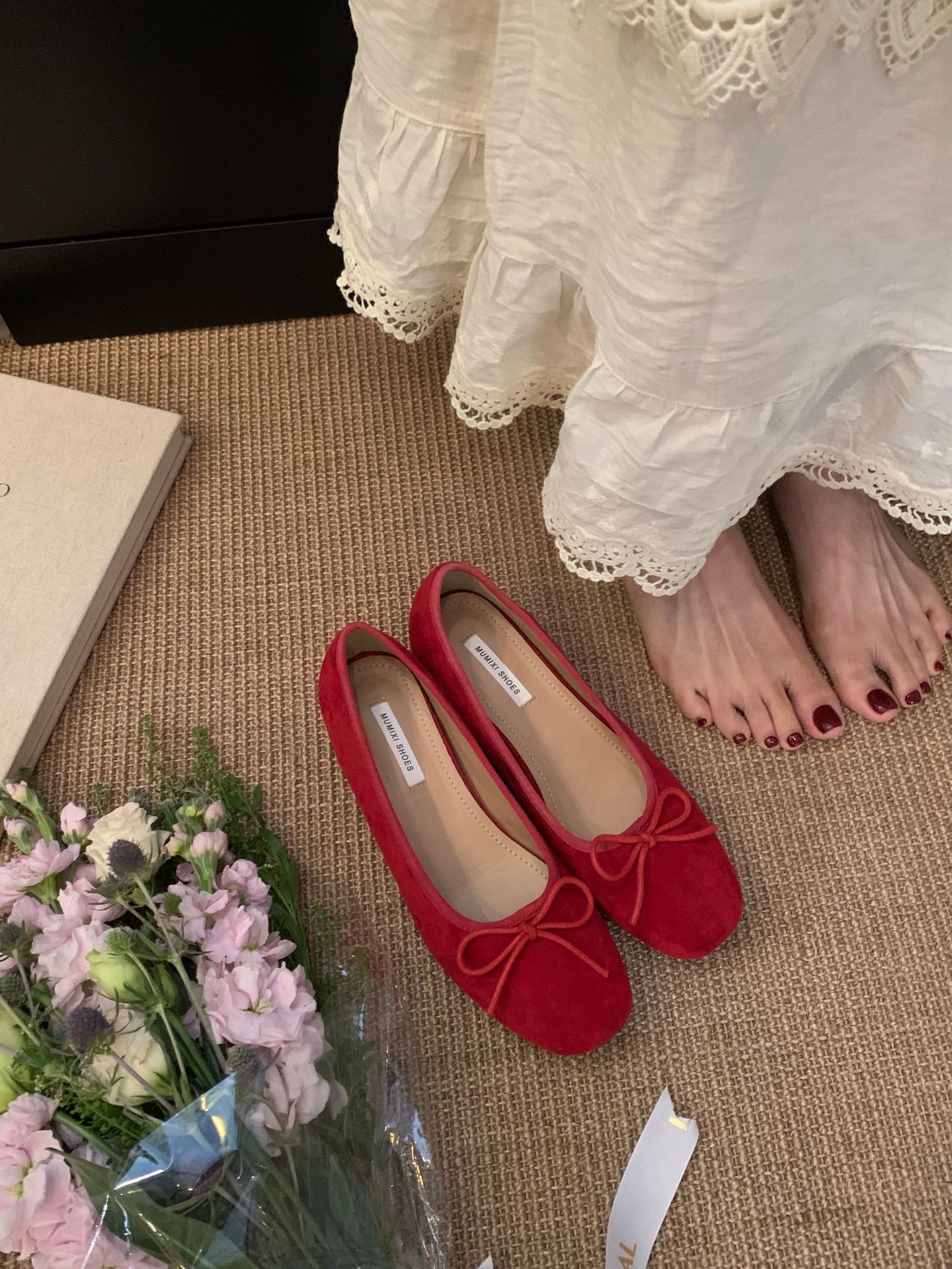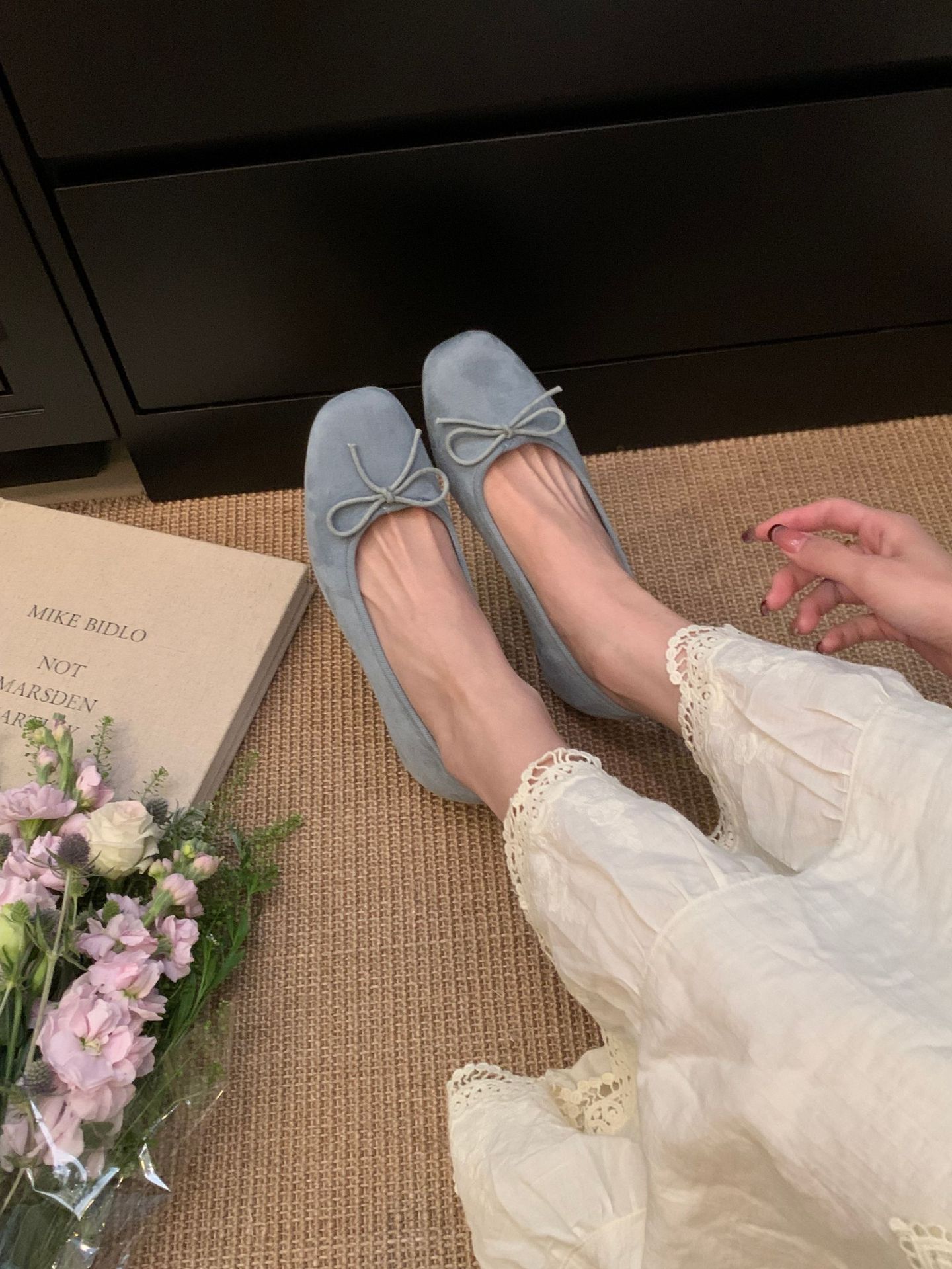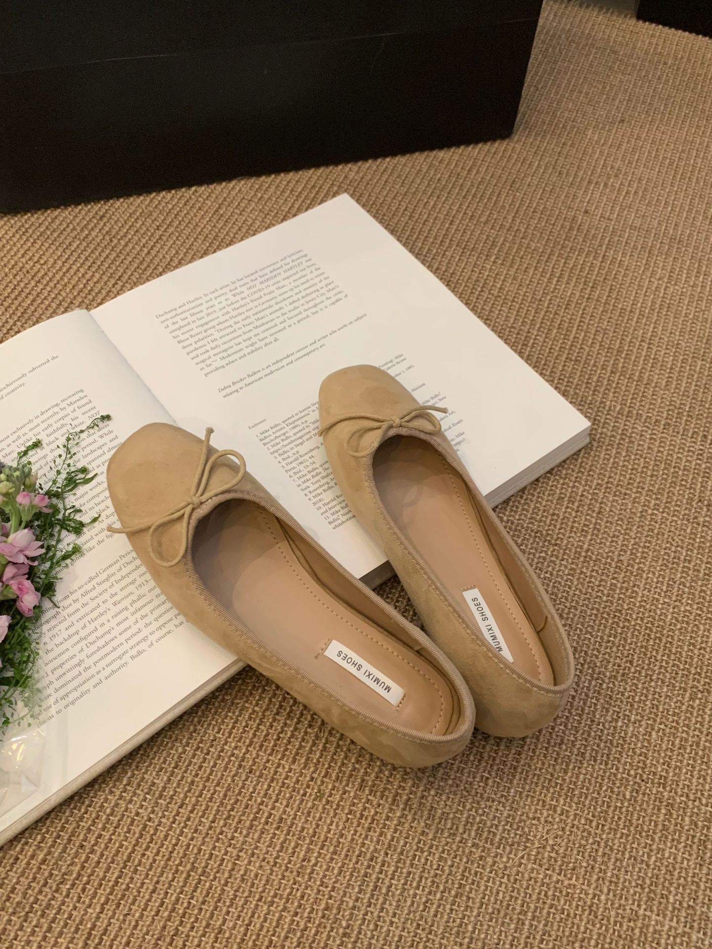 내부 높이 스웨이드 스퀘어 헤드 밀크 신발 스퀘어 헤드 여성 신발 2025 봄 검은 발레 활 신발스토어 가기