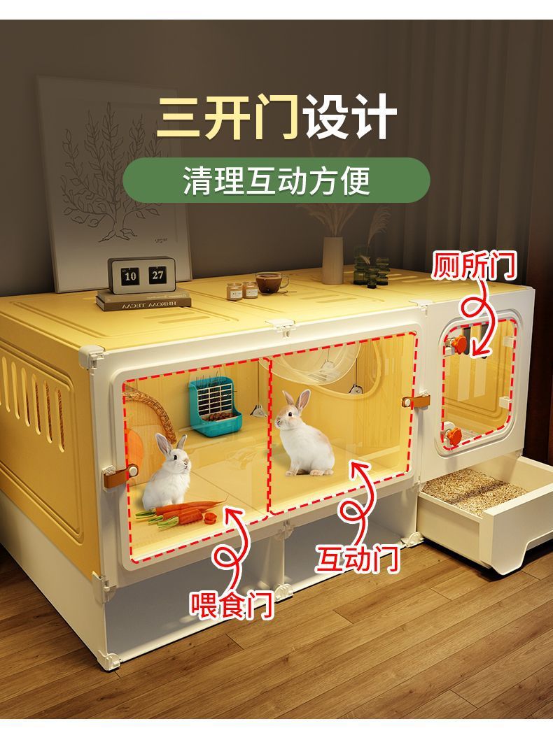 Yut 토끼 케이지 완전히 밀폐 된 화장실 탈취제 가정용 대형 애완 동물 빌라 겨울 특수 둥지 토끼 케이지 실내