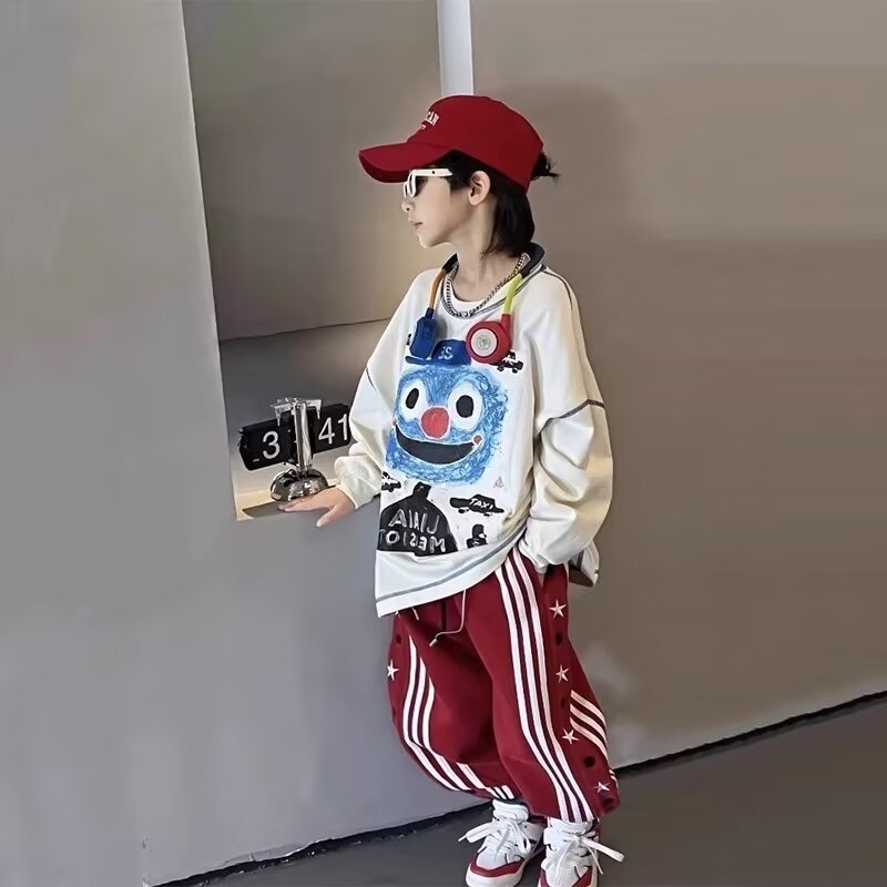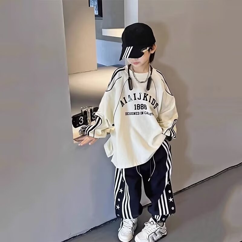 소년 전국 패션 아메리칸 레트로 스포츠 가을 어린이 스타 브레스트 자수 한국 스타일 스트레이트 바지 쿨