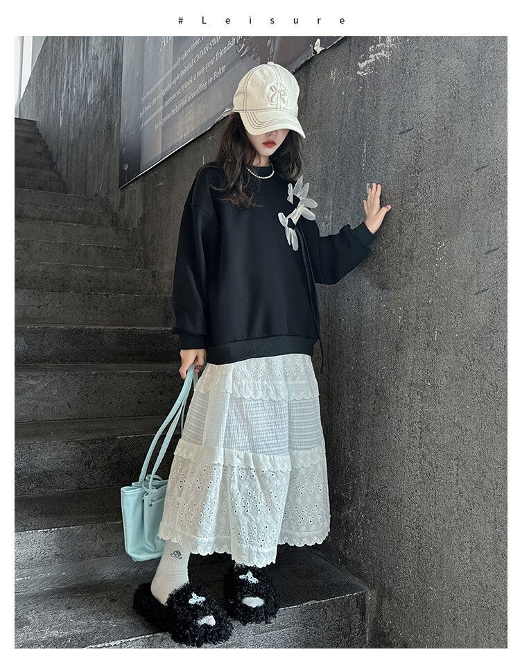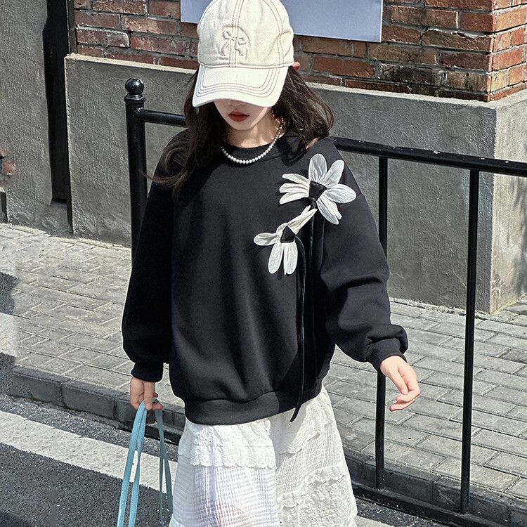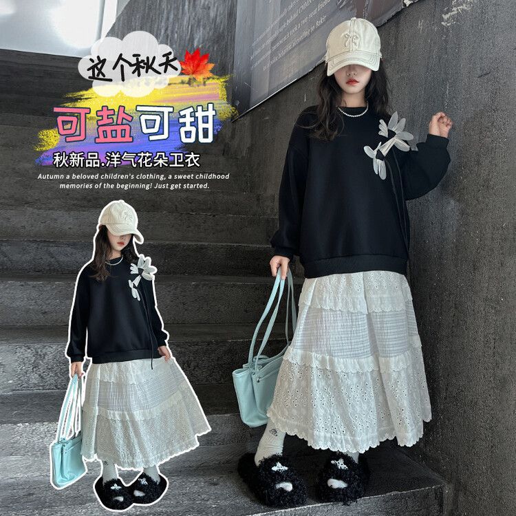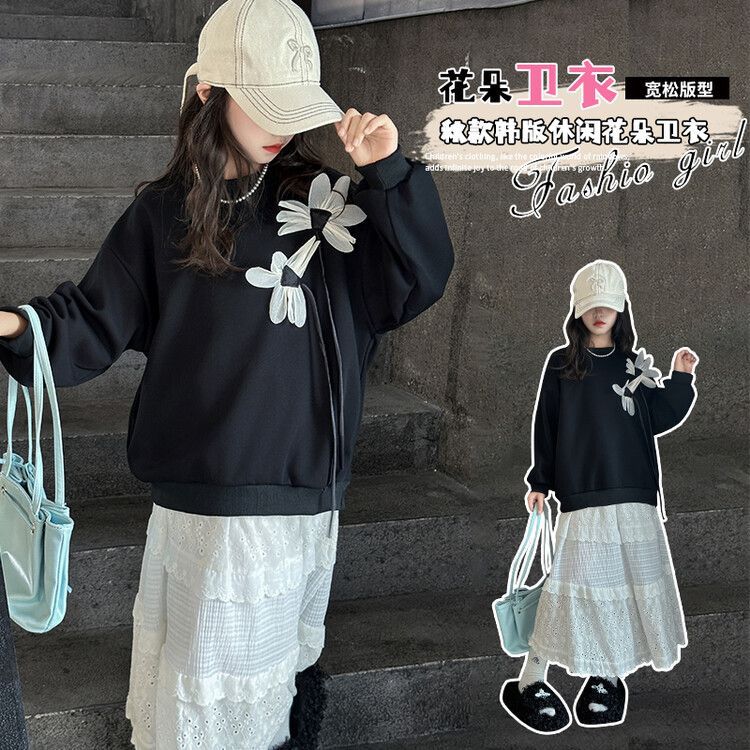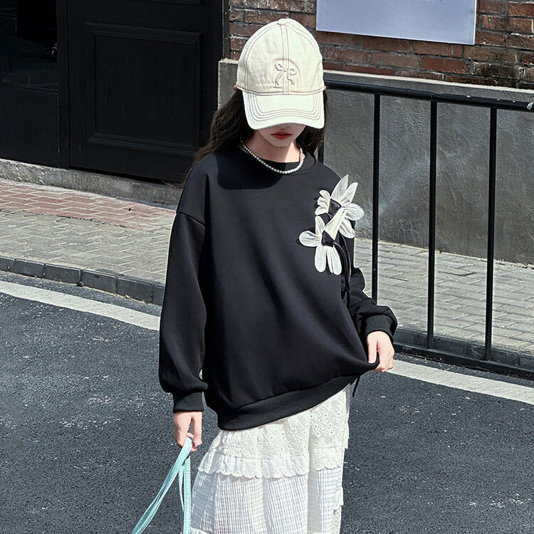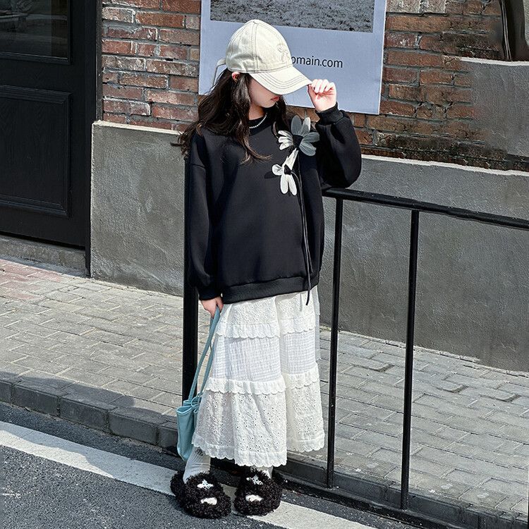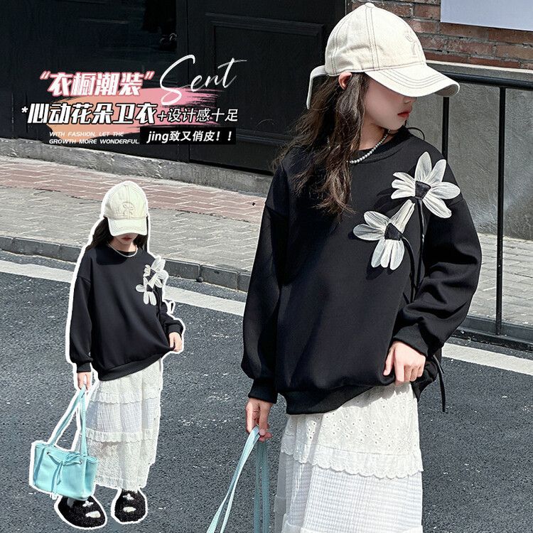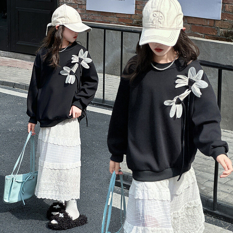 소녀의 봄과 가을 땀 2025 가을 새로운 도착 어린이 긴팔 검은 소녀의 큰 소년 서양식 가을 원피스 소녀의 탑스토어 가기