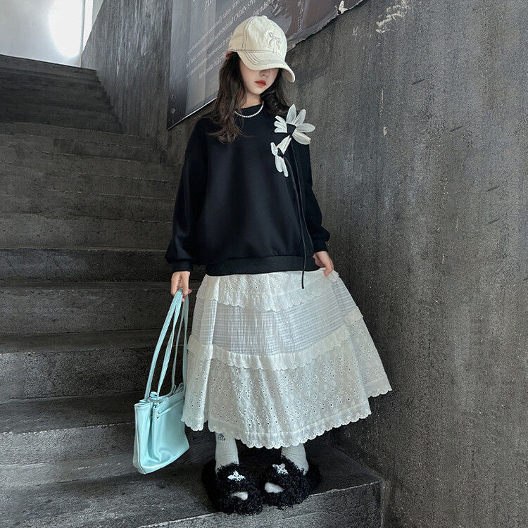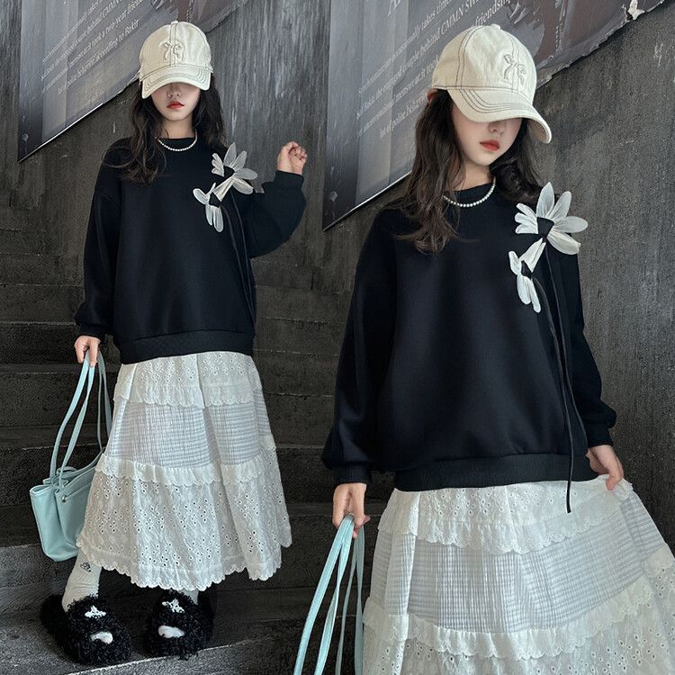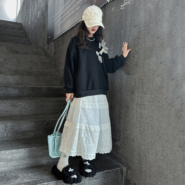 소녀의 봄과 가을 땀 2025 가을 새로운 도착 어린이 긴팔 검은 소녀의 큰 소년 서양식 가을 원피스 소녀의 탑