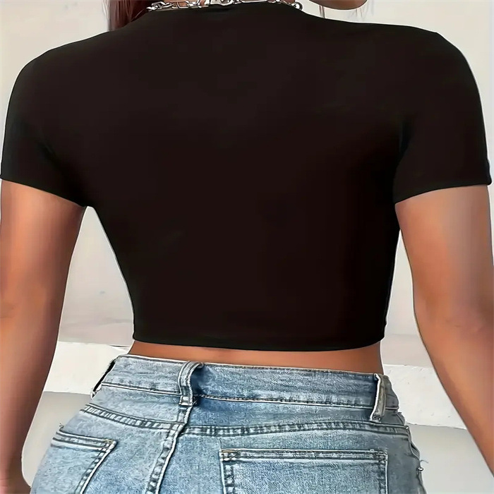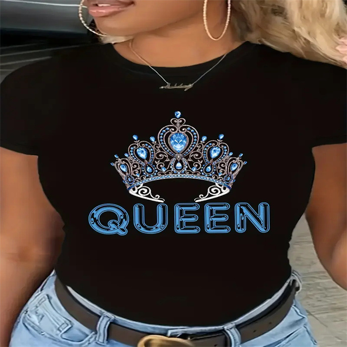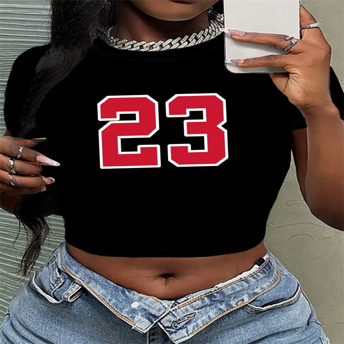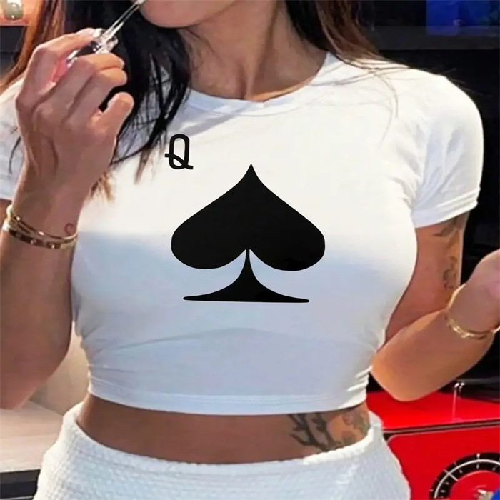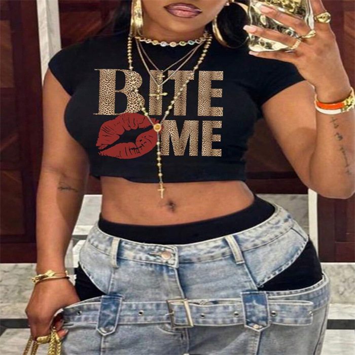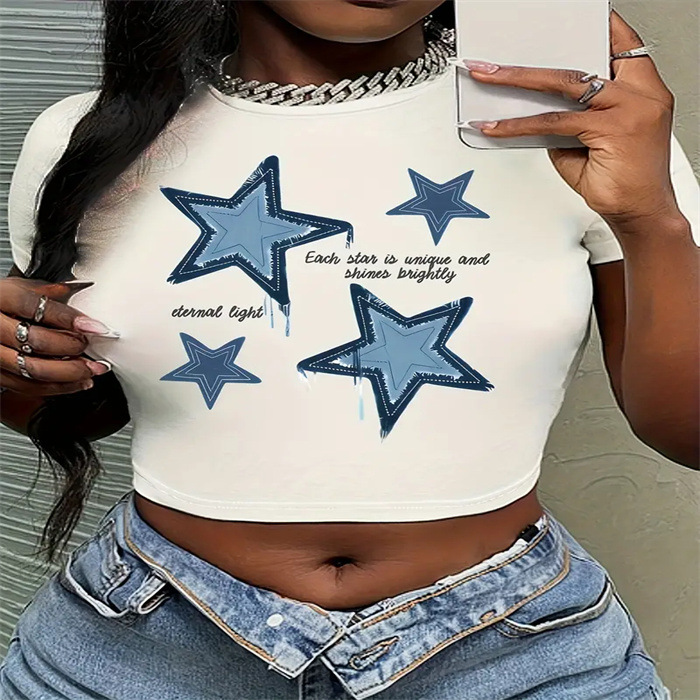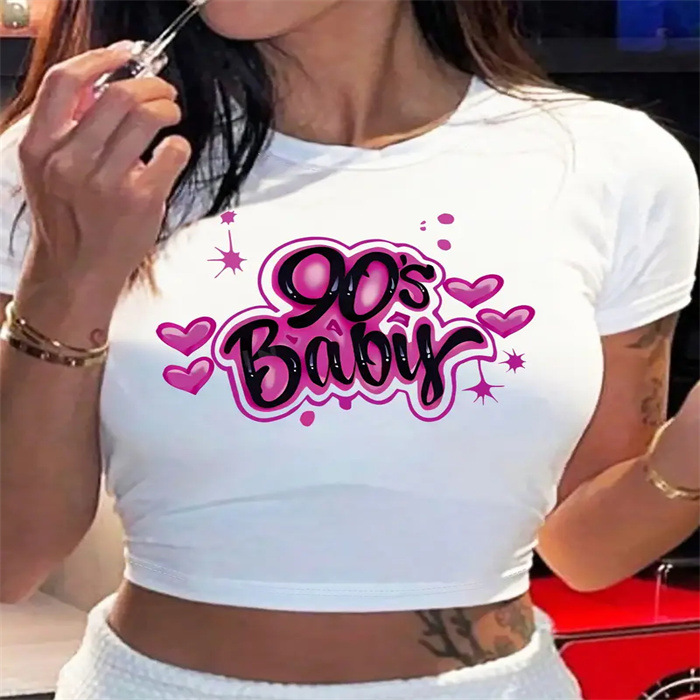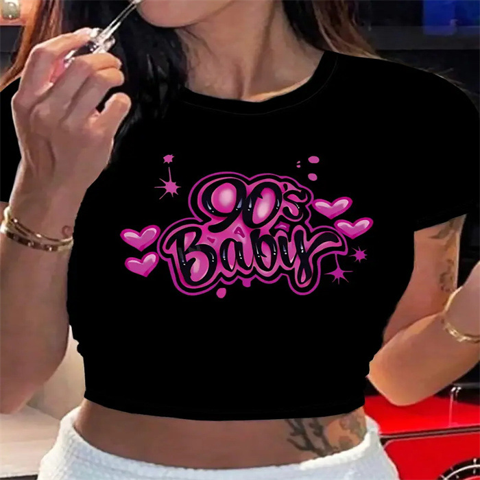 국경 간 유럽과 미국의 여름 새로운 슬림 핏 슬리밍 스파이스 소녀 섹시한 짧은 작은 신선한 패턴 인쇄 티셔츠 여성용 탑스토어 가기
