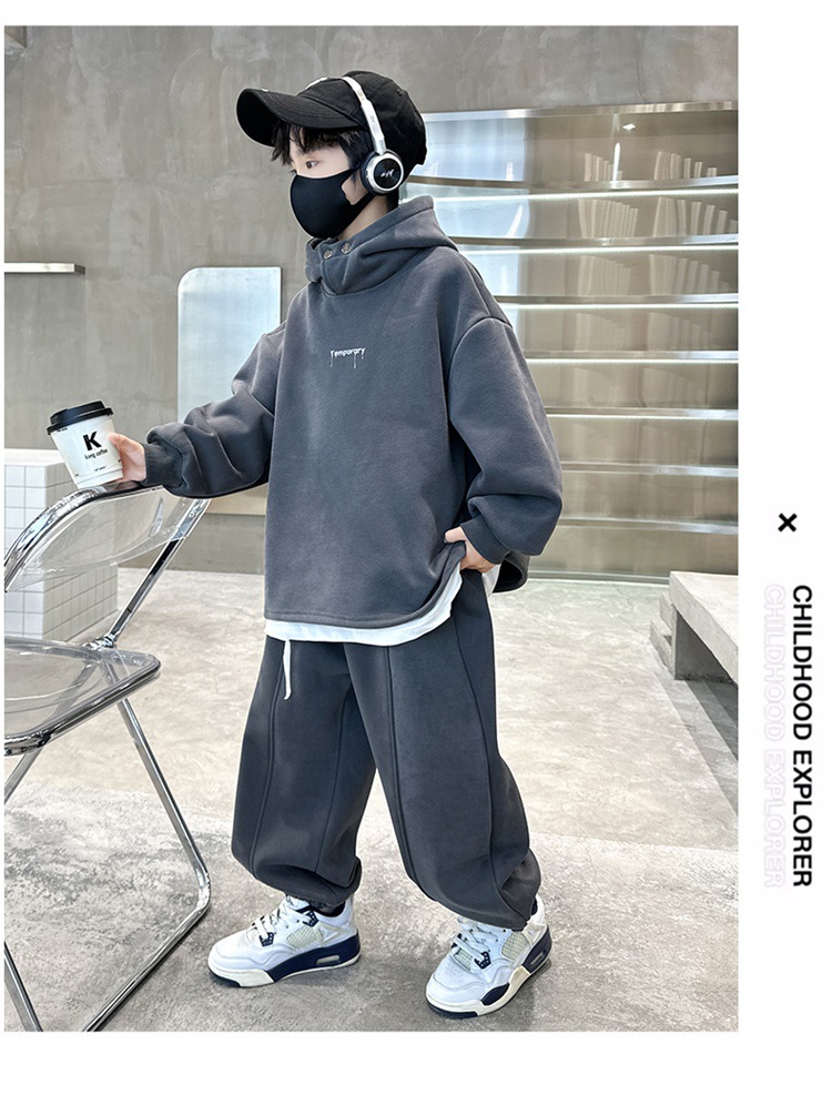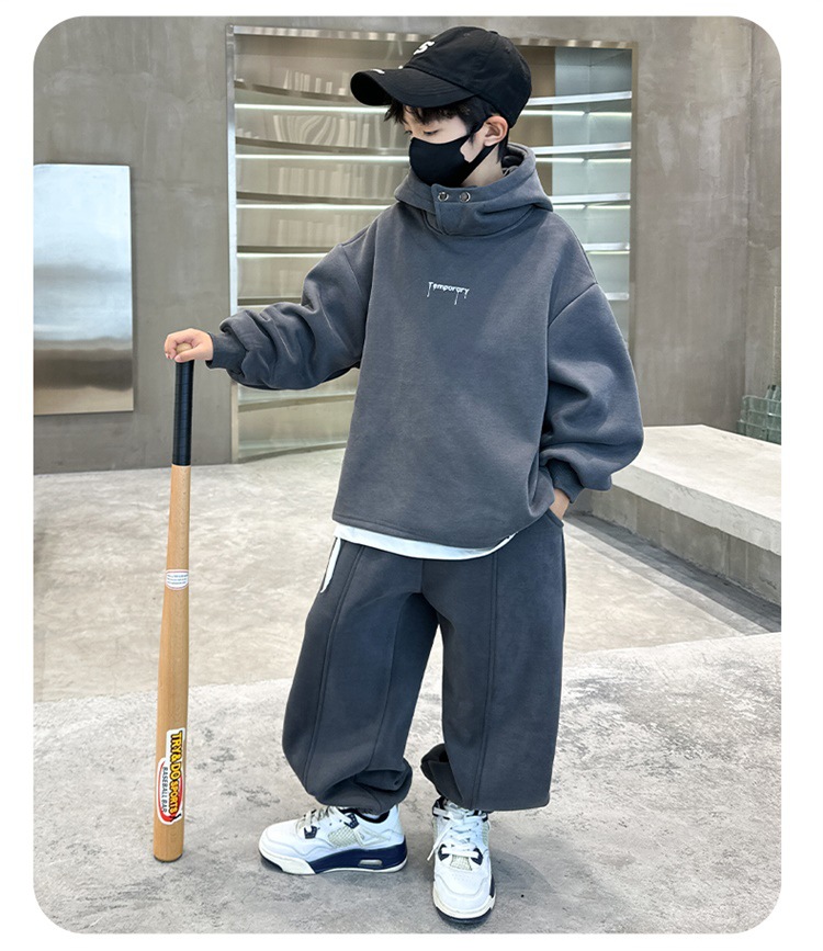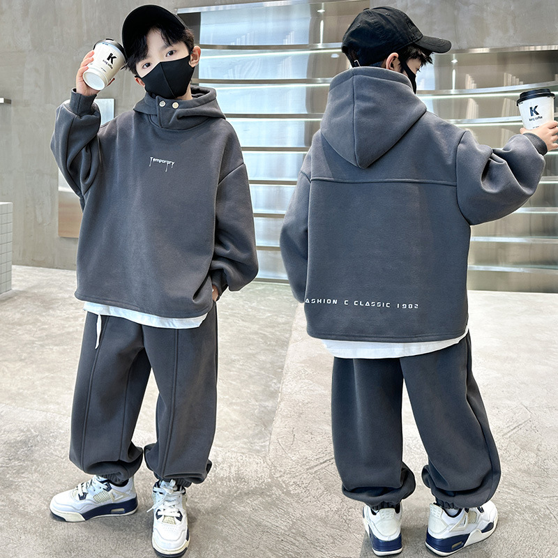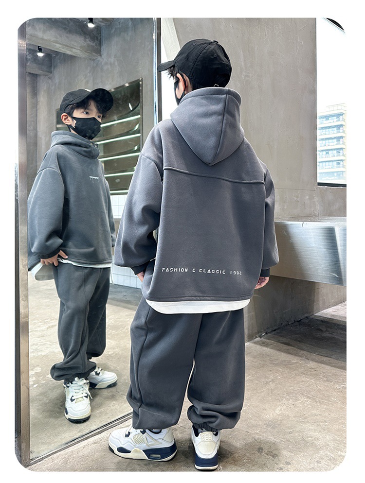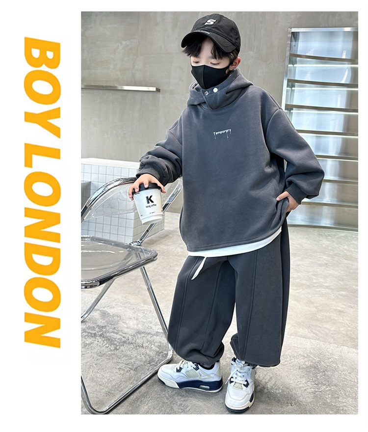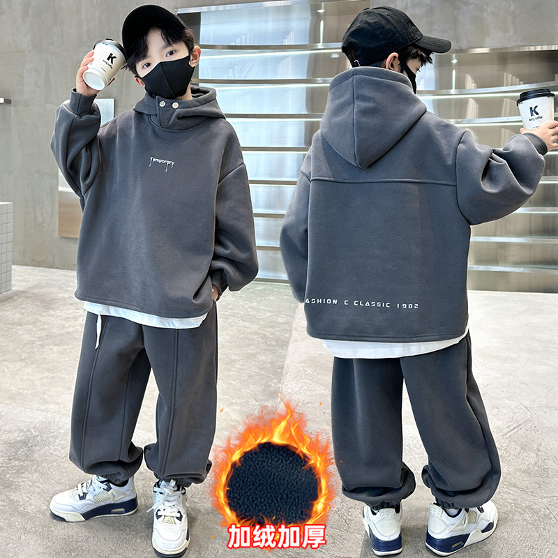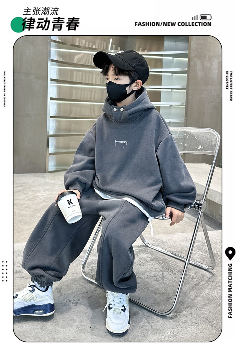아동복 남아 가을 의류 세트 2025 신상 가을 겨울 스웨트셔츠 멋진 큰 아이들용 플리스 운동복 투피스 세트스토어 가기