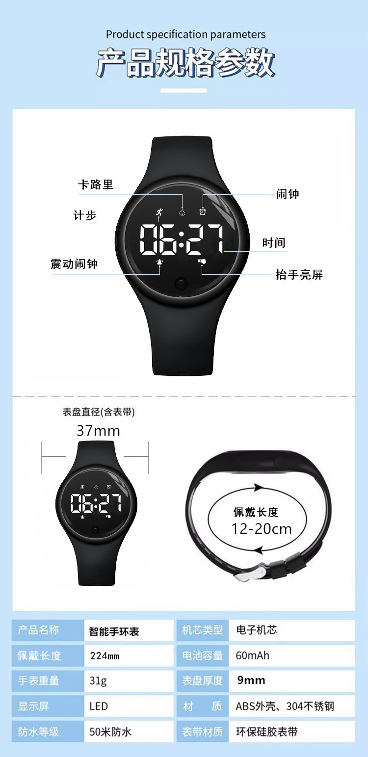 전자 시계 남자 주니어 고등학교 학생 여성 침묵 진동 알람 시계 음소거 어린이 운동 만 시간 테스트 링