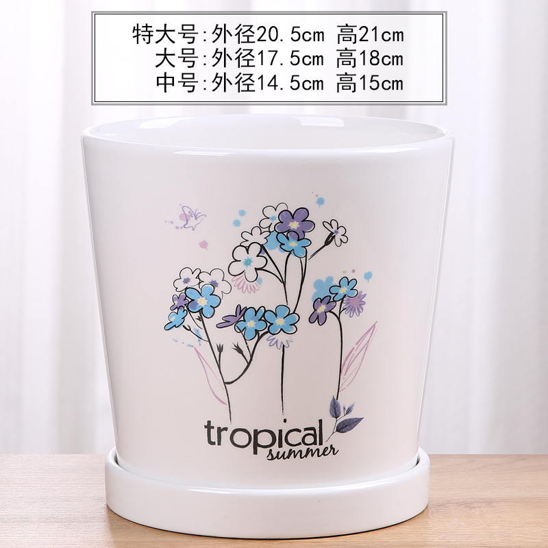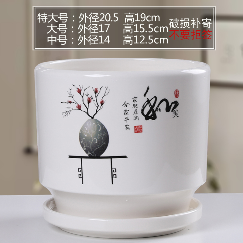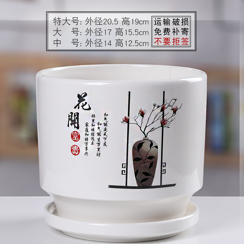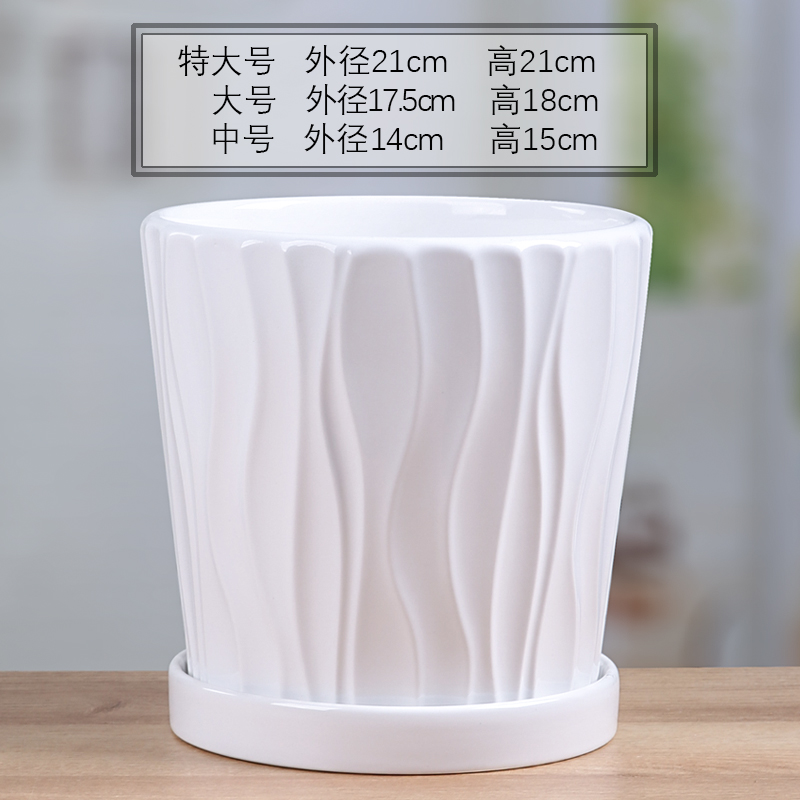 꽃 냄비 세라믹 여분의 대형 트레이 그린 로즈 북유럽 간단한 흰색 창조적 인 가정 큰 육체 높이