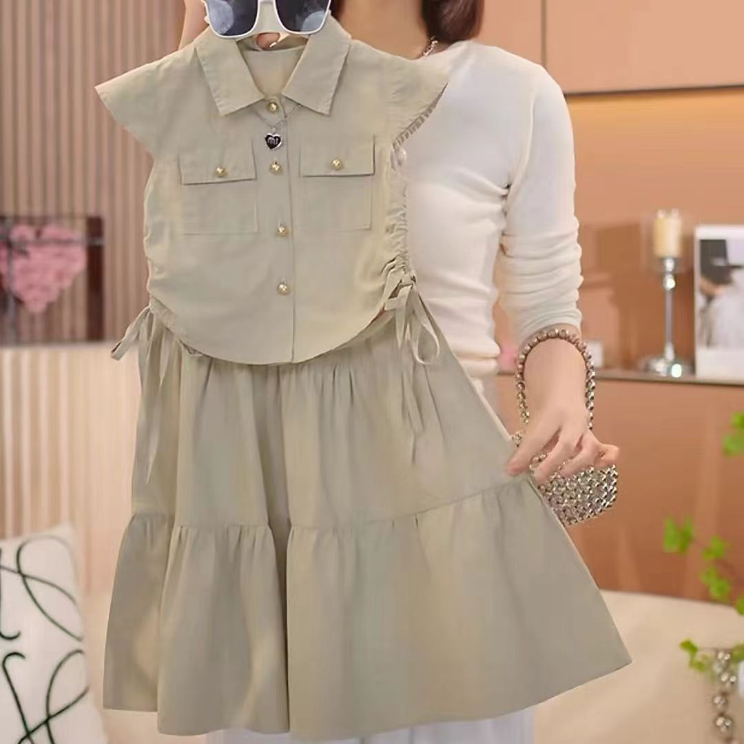 여아 의류 정장 여름 2024 새로운 아동 셔츠 여아 스커트 투피스 세트 여아 봄 새로운 스타일