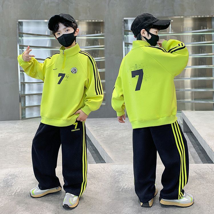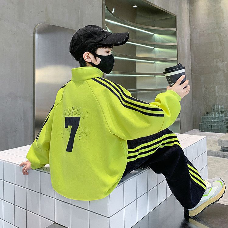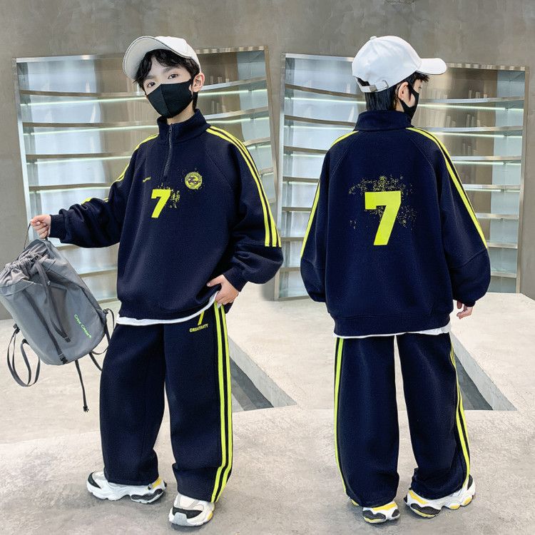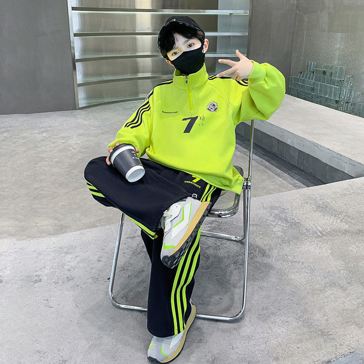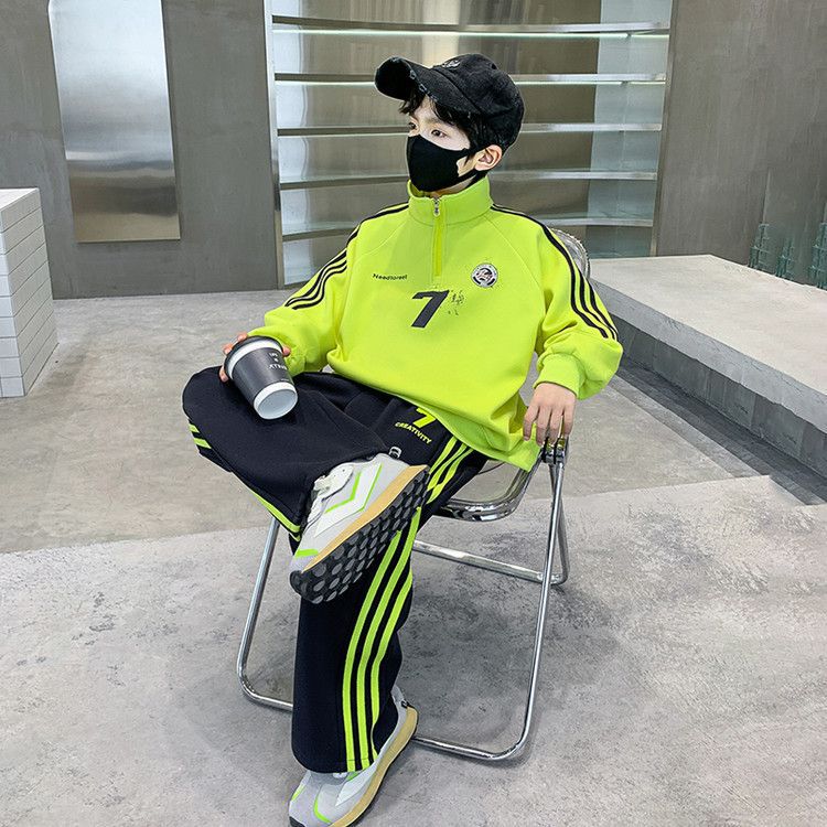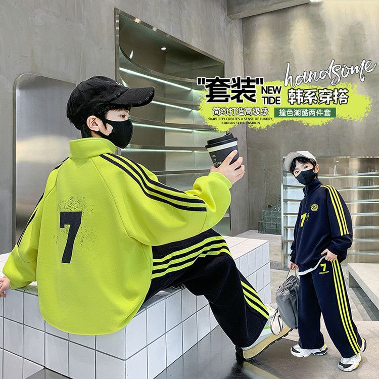 소년 세트 봄과 가을 2025 새로운 서양 스타일 쿨 칼라 스포츠 땀 큰 어린이 봄 어린이 패션스토어 가기