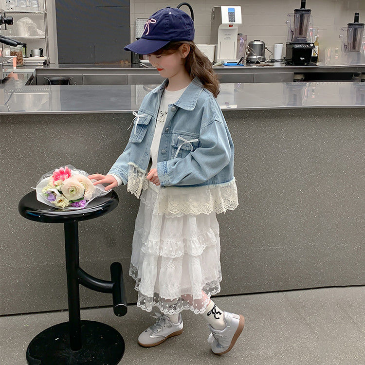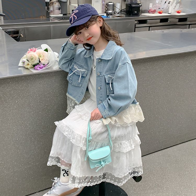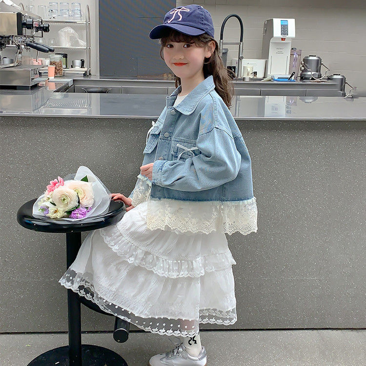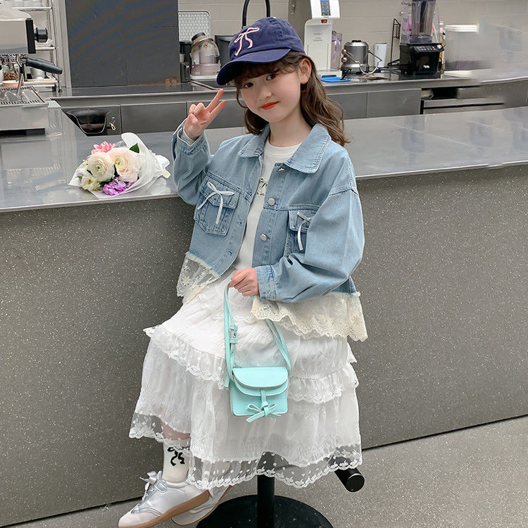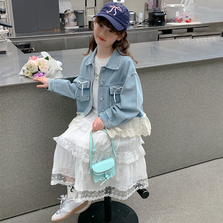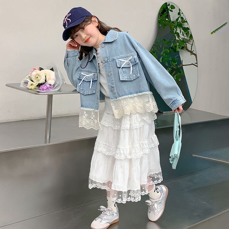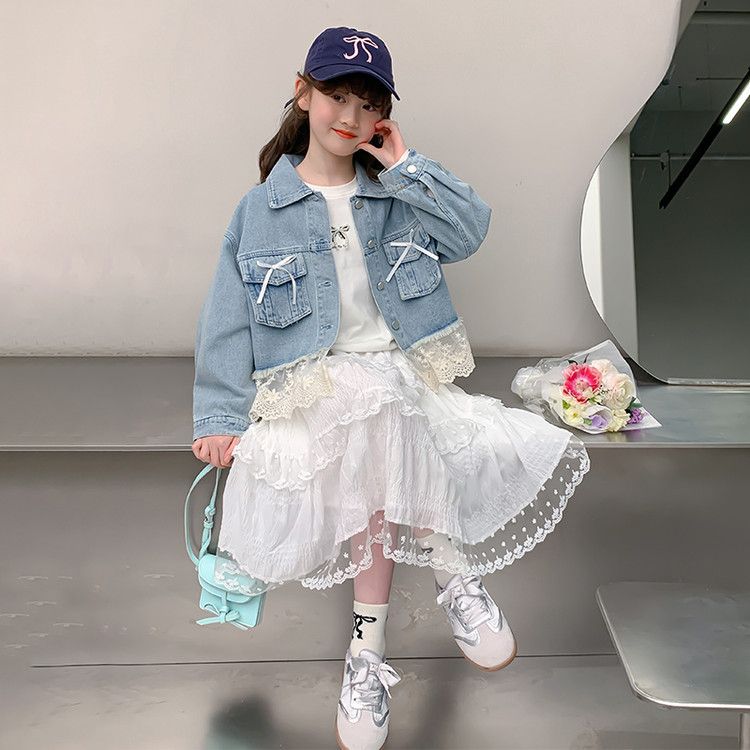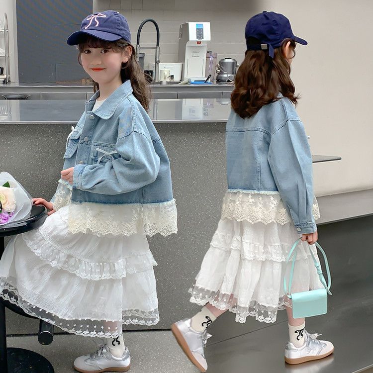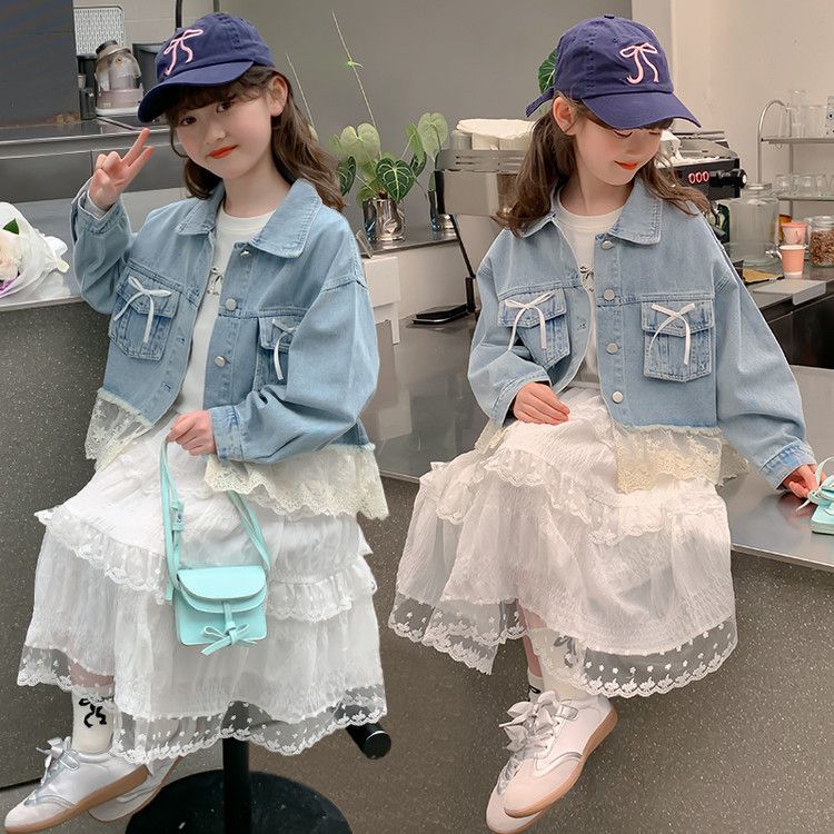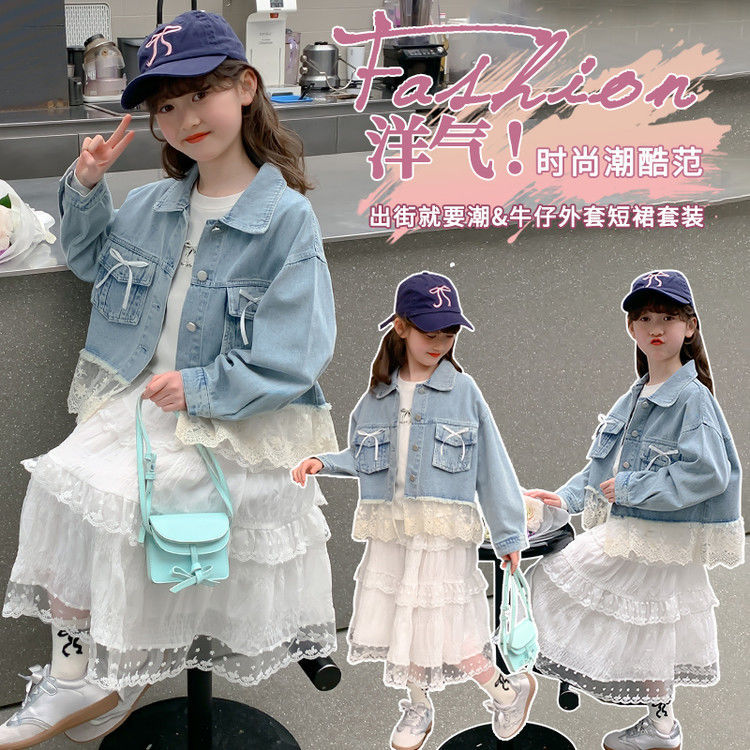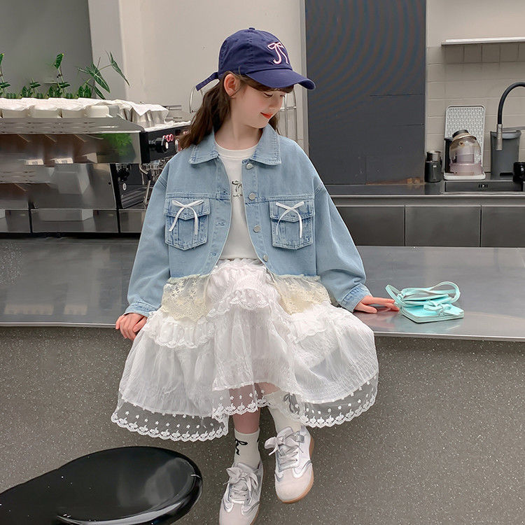 소녀의 데님 코트 2025 년 봄과 가을 새로운 도착 활 소녀의 초가을 최고 어린이 가을 투피스 세트