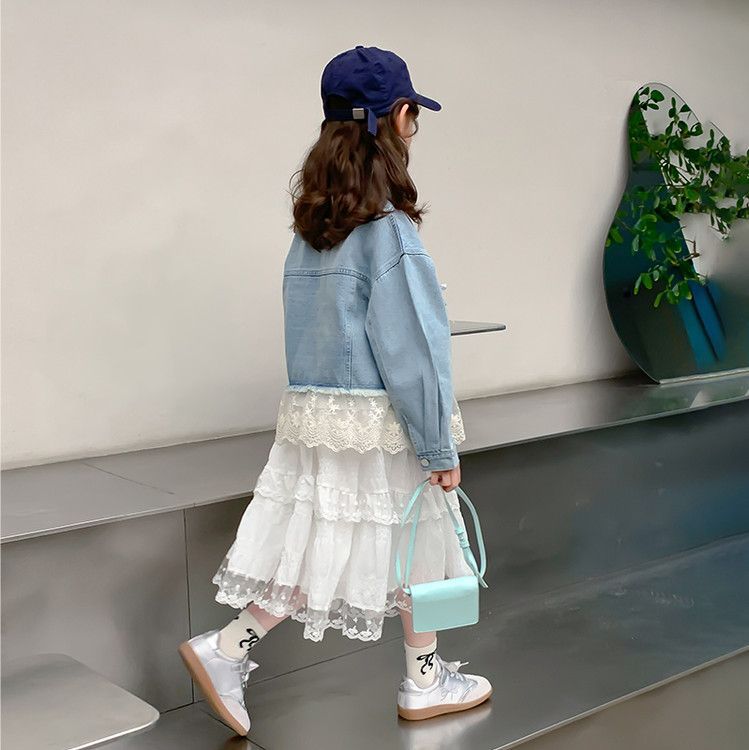 소녀의 데님 코트 2025 년 봄과 가을 새로운 도착 활 소녀의 초가을 최고 어린이 가을 투피스 세트스토어 가기