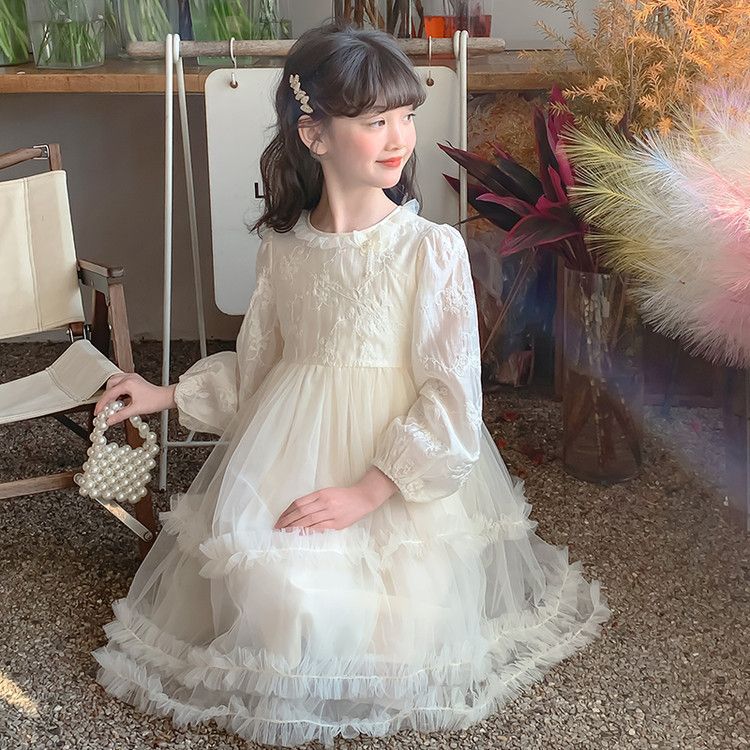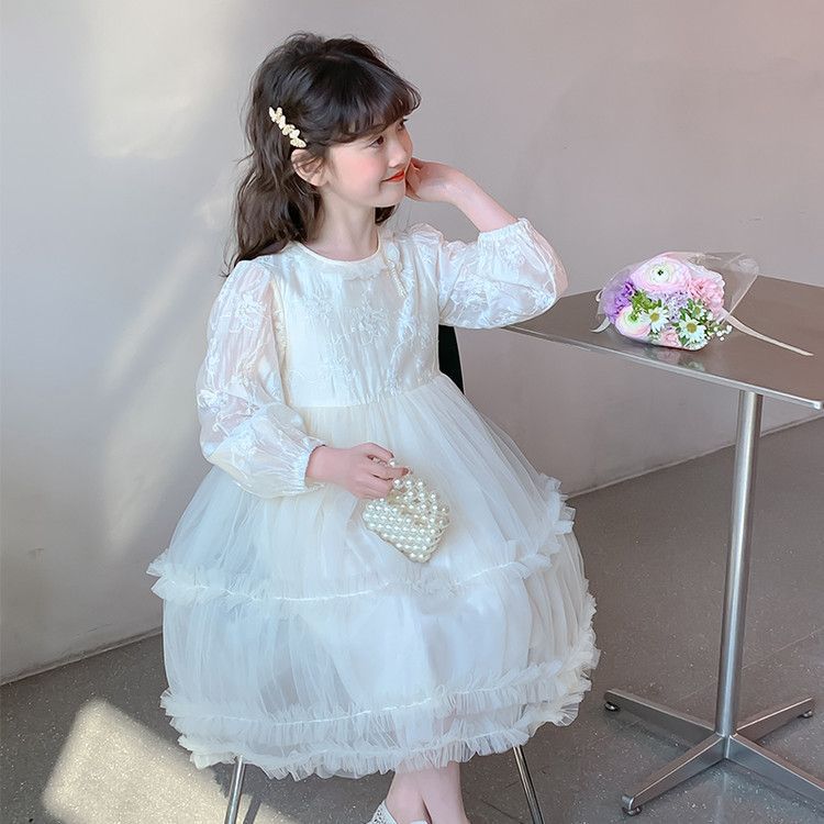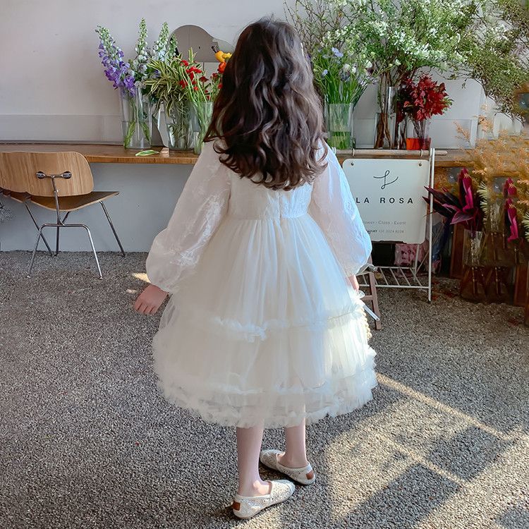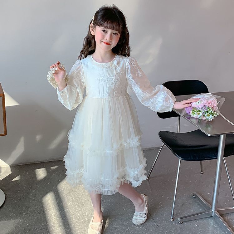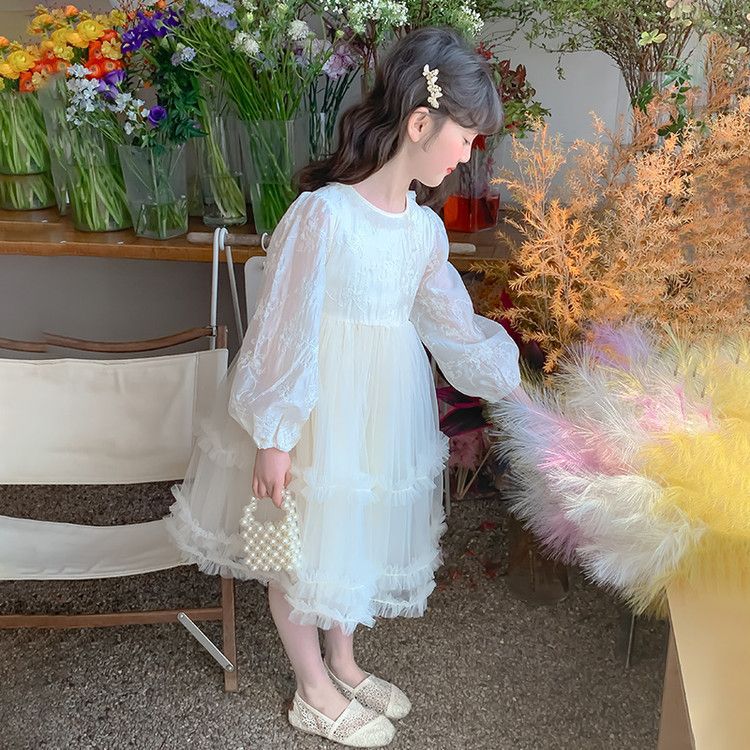 소녀의 원피스 봄과 가을 2025 새로운 스타일 어린이 유행 어린 소녀의 봄 공주 원피스