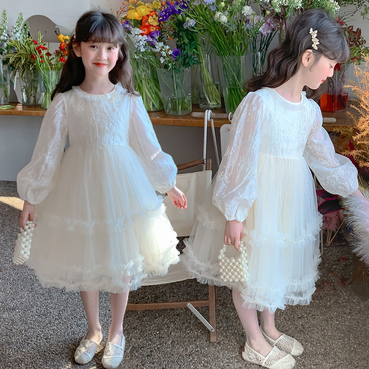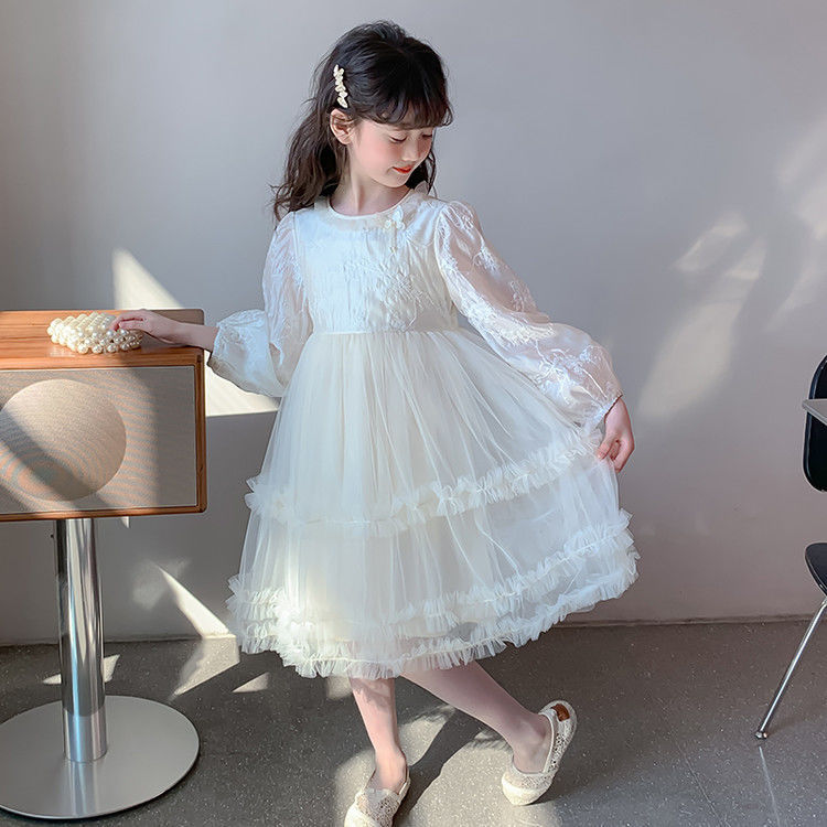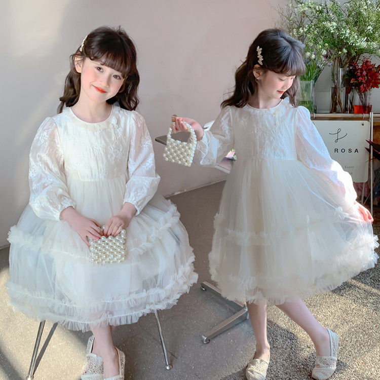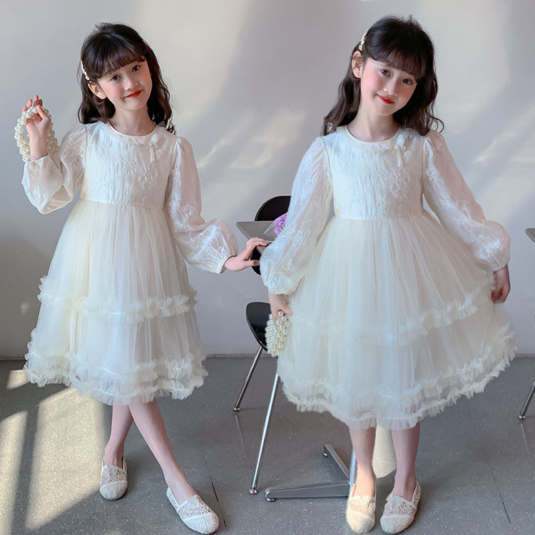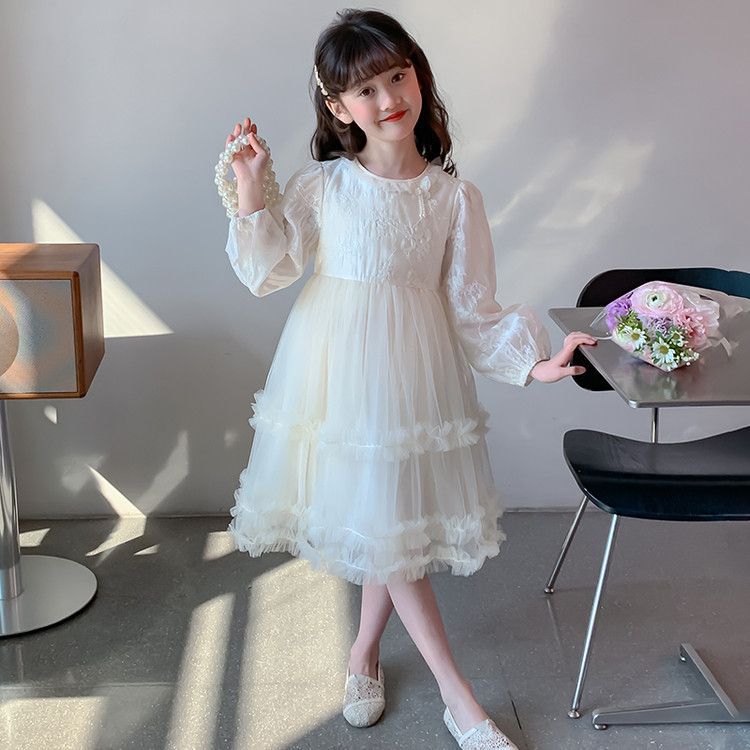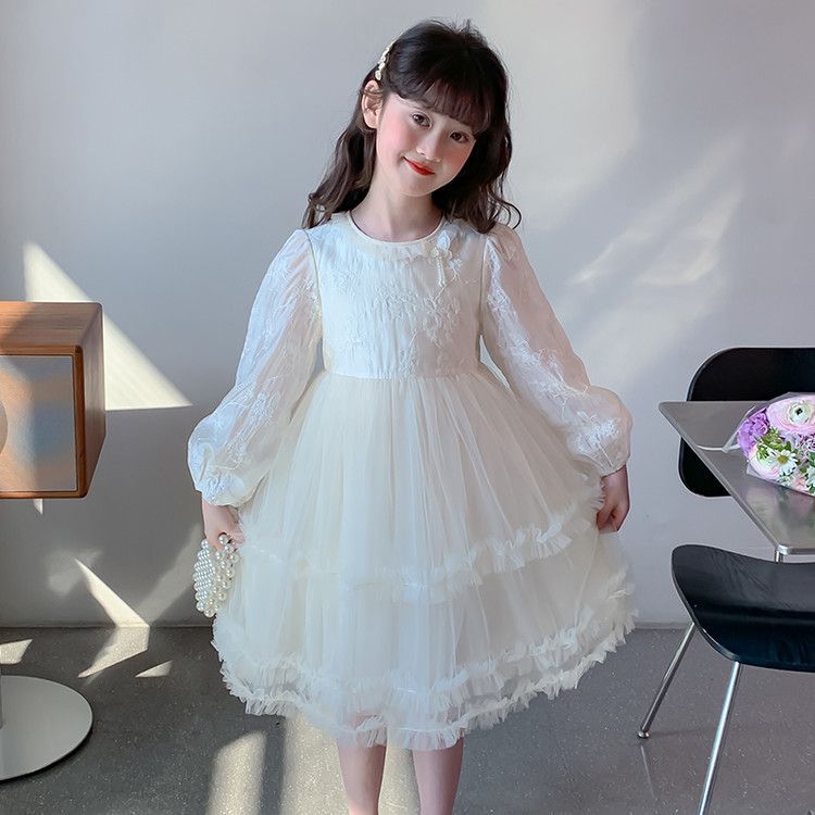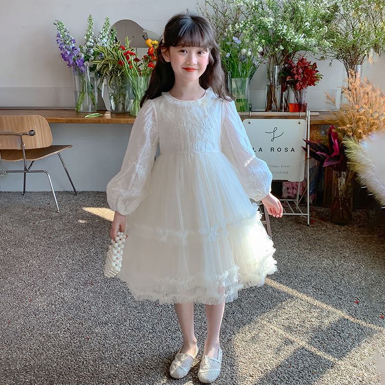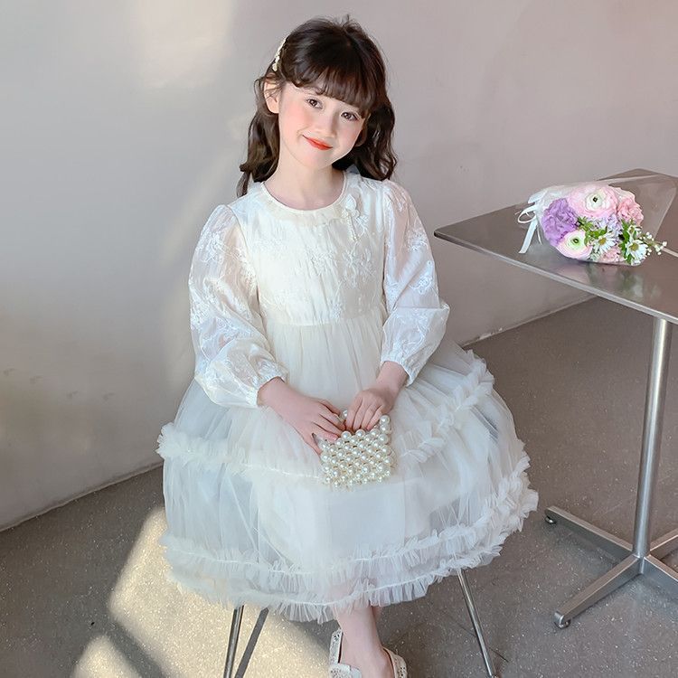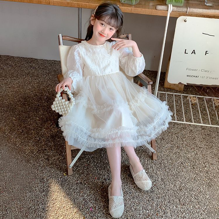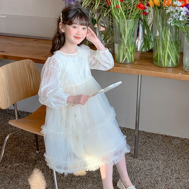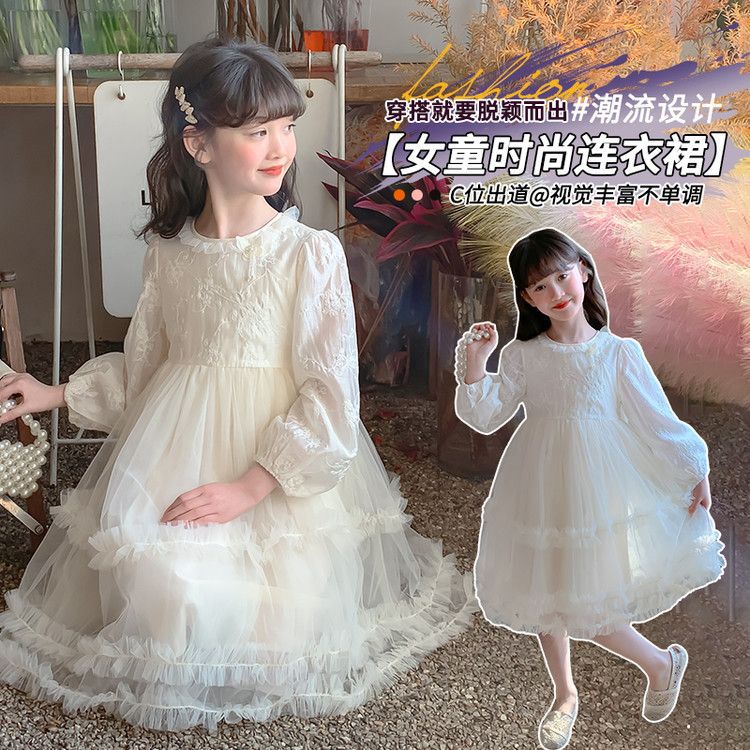 소녀의 원피스 봄과 가을 2025 새로운 스타일 어린이 유행 어린 소녀의 봄 공주 원피스스토어 가기