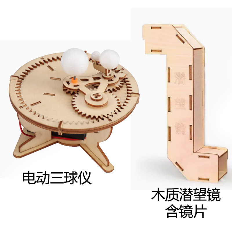 • 태양, 지구 및 달 모델 1세트 + 렌즈가 포함된 잠망경 1세트, 목재 재료, 배터리 포함