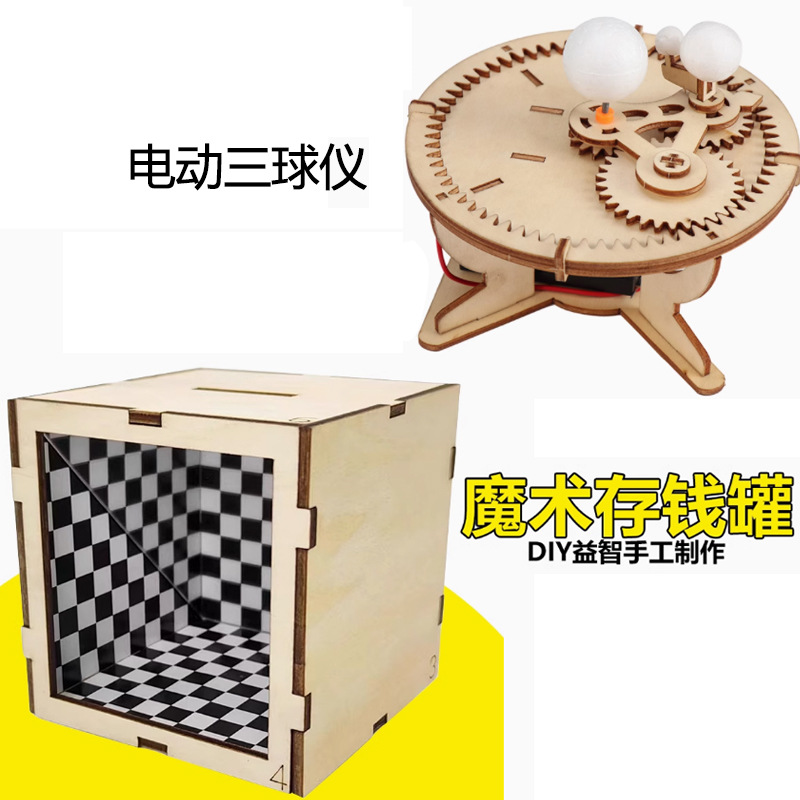 • 태양, 지구 및 달 모델 1세트 + 돼지 저금통 1세트, 목재 재료 패키지 및 배터리 포함