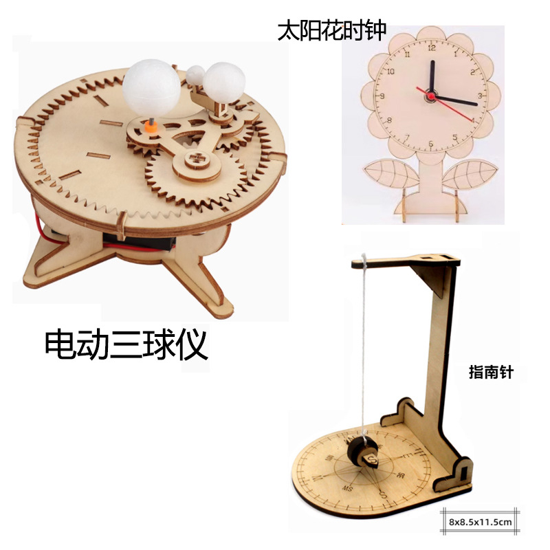 • 태양, 지구 및 달 모델 1세트 + 나침반 1세트 + 해바라기 시계 1세트, 목재 재료 패키지에는 배터리가 포함되어 있습니다.