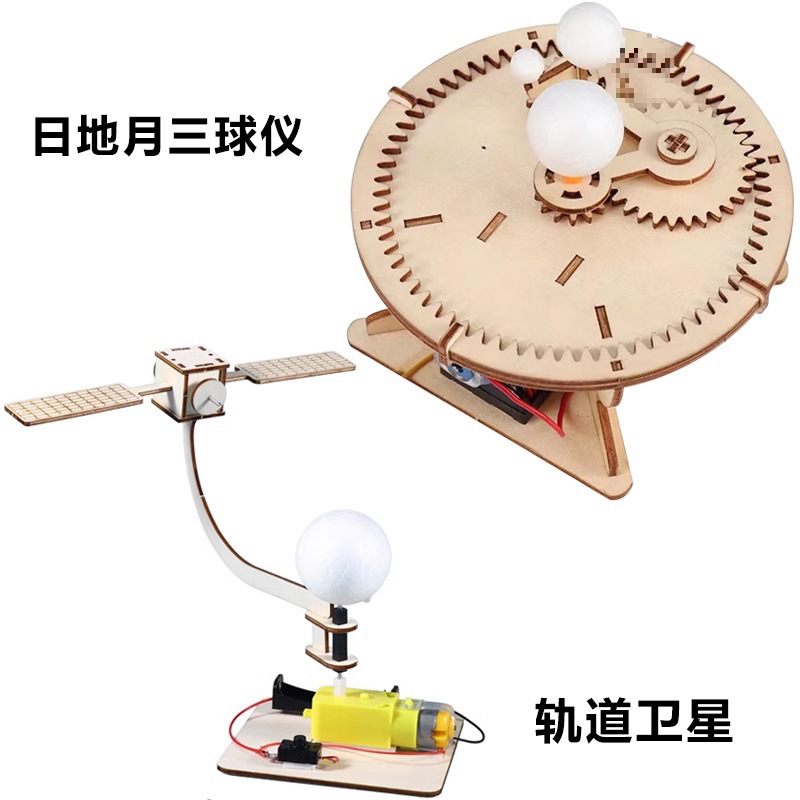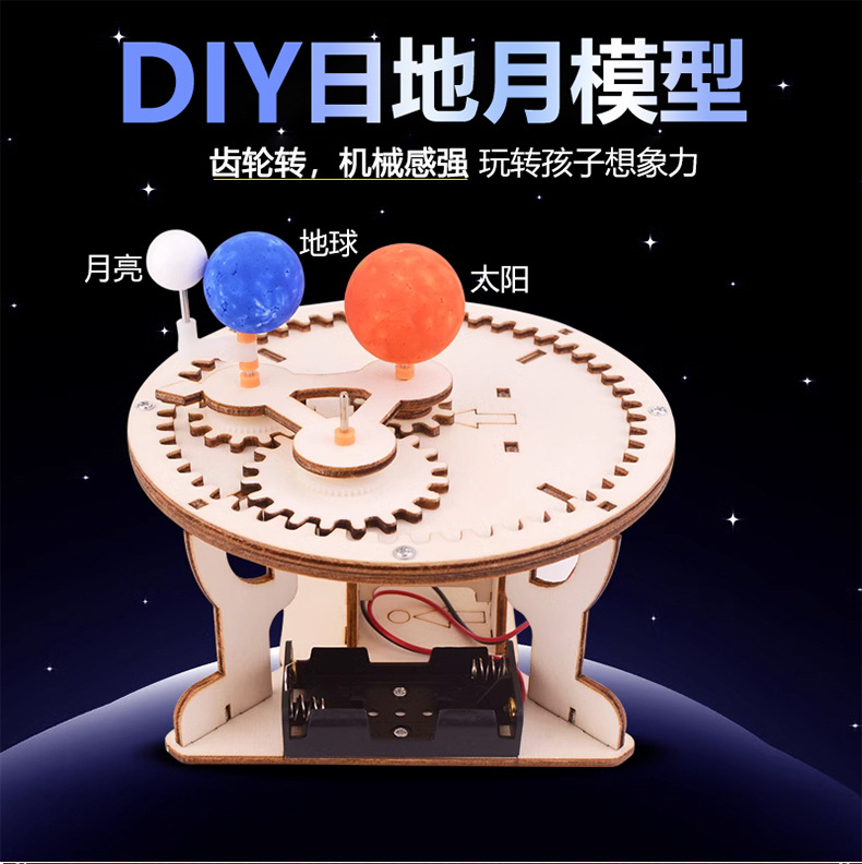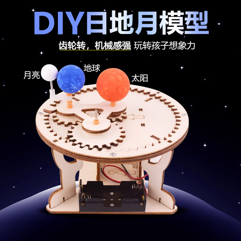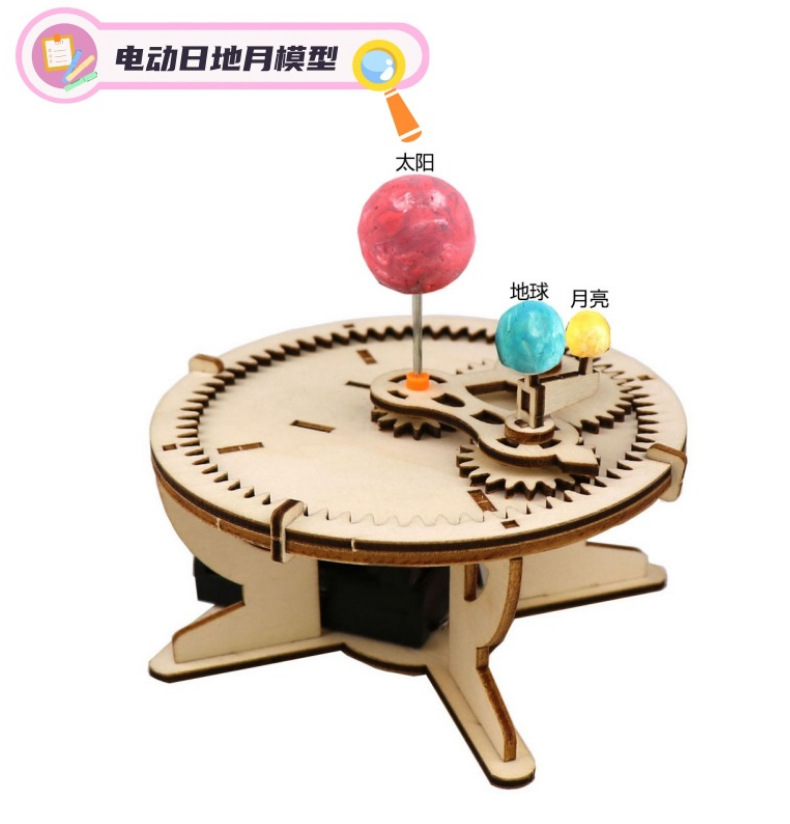 • 태양 위성 + 태양-지구-달 모델, 목재 재료 패키지에는 배터리가 포함되어 있습니다.