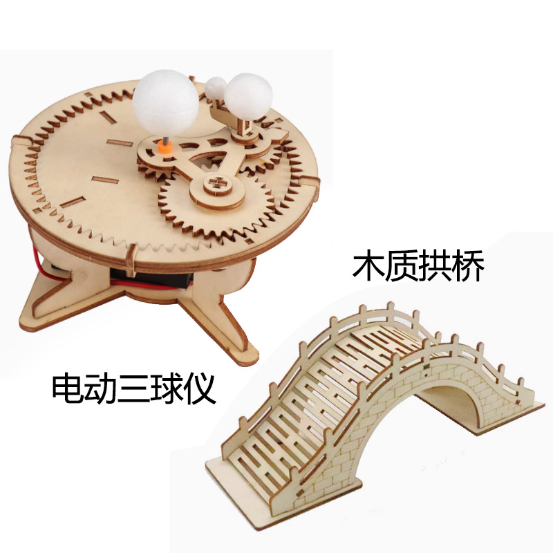 • 태양, 지구 및 달 모델 1세트 + 나무 다리 1세트, 나무 재료 패키지에는 배터리가 포함되어 있습니다.