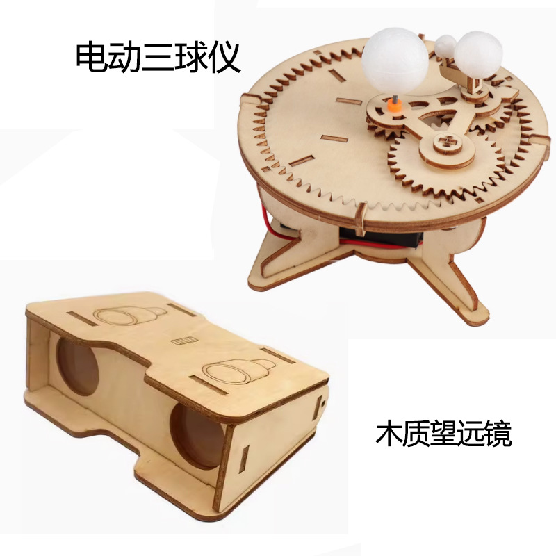 • 태양, 지구, 달 모델 1세트 + 망원경, 목재 재료 패키지, 배터리 포함