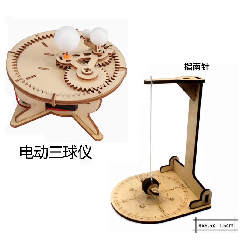 • 태양, 지구 및 달 모델 1세트 + 나침반 1세트, 목재 재료 패키지에는 배터리가 포함되어 있습니다.