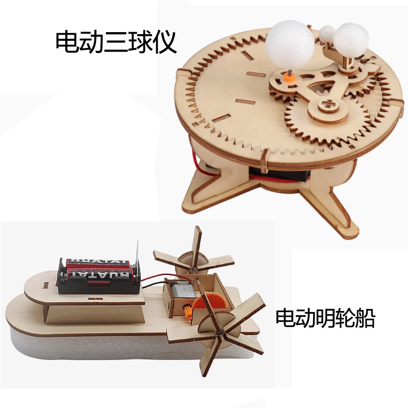 • 태양, 지구 및 달 모델 1세트 + 전기 외륜선, 목재 재료 패키지, 배터리 포함