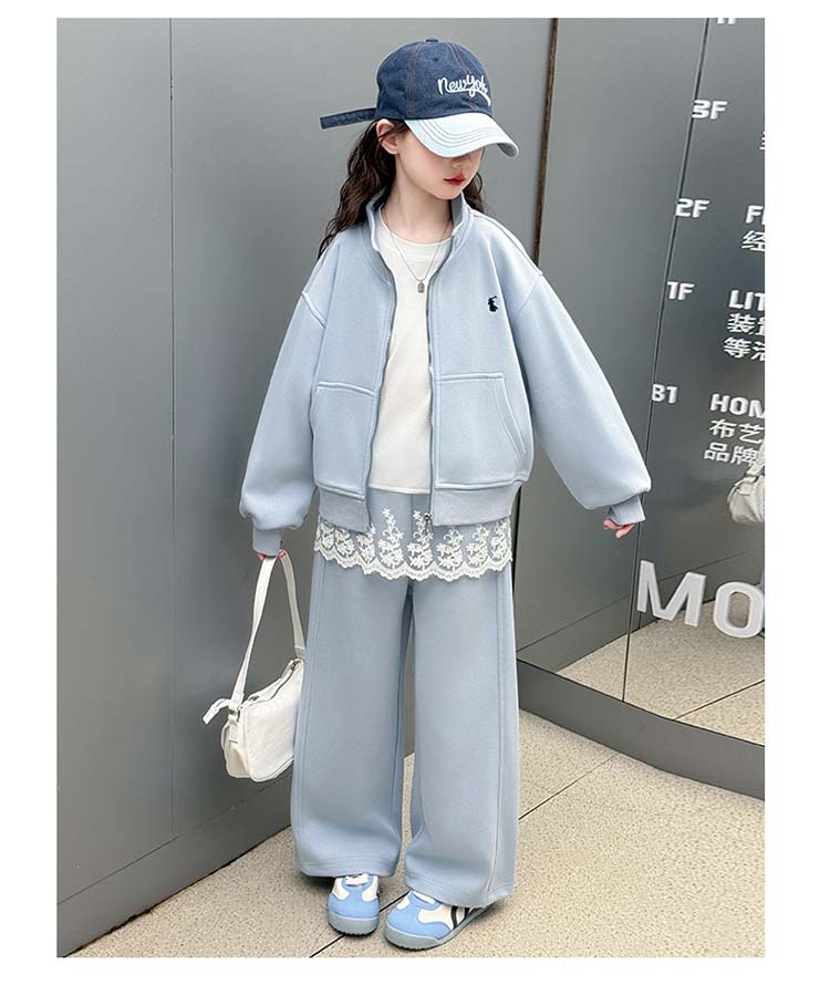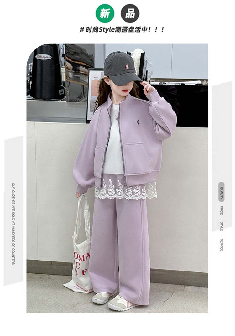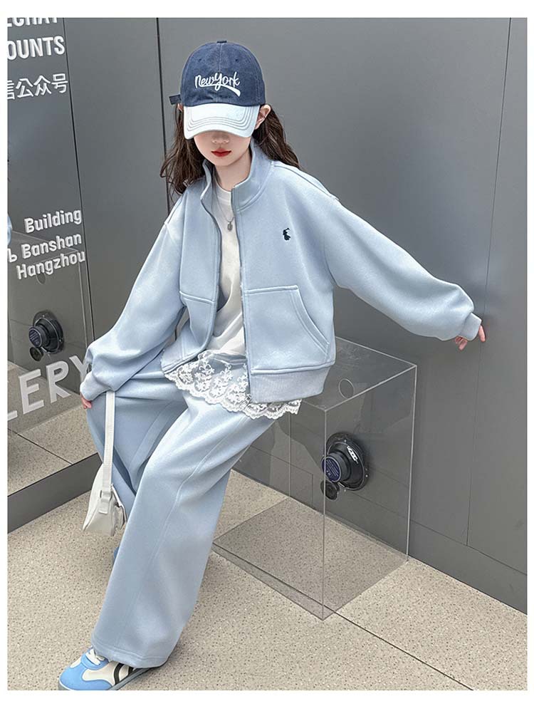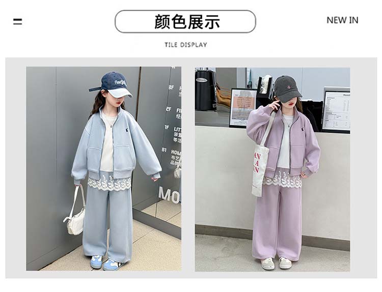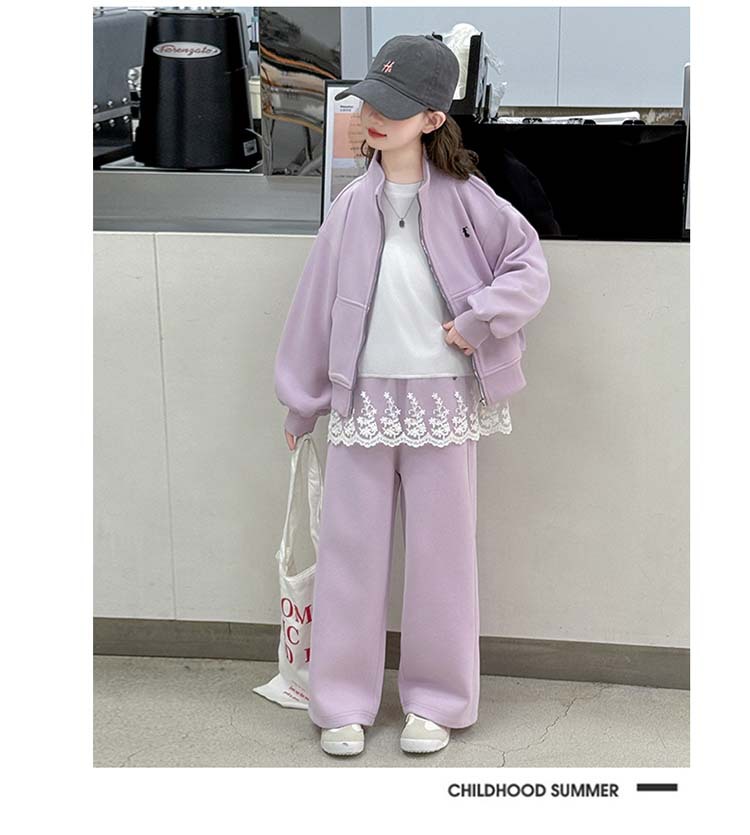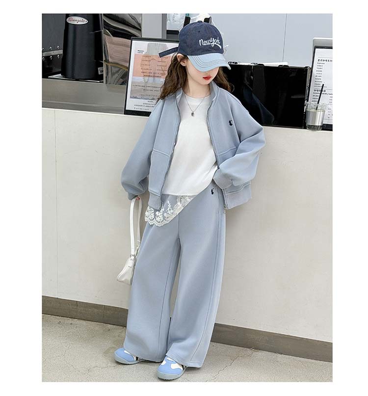 소녀의 봄과 가을 세트 2025 새로운 어린이 스포츠 자수 지퍼 자켓베이스 셔츠 캐주얼 바지 3 피스 세트스토어 가기
