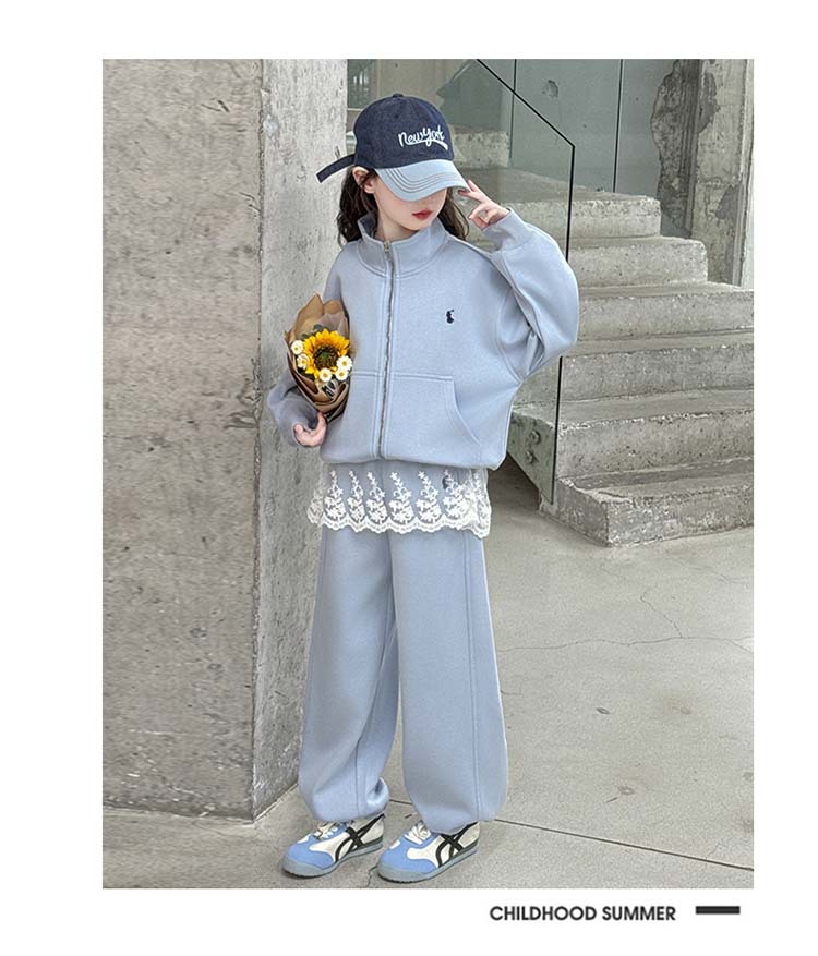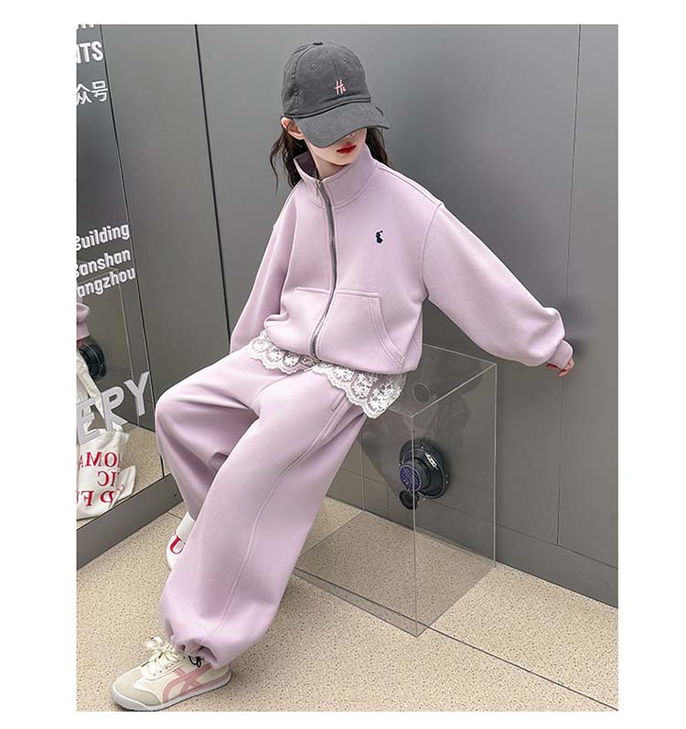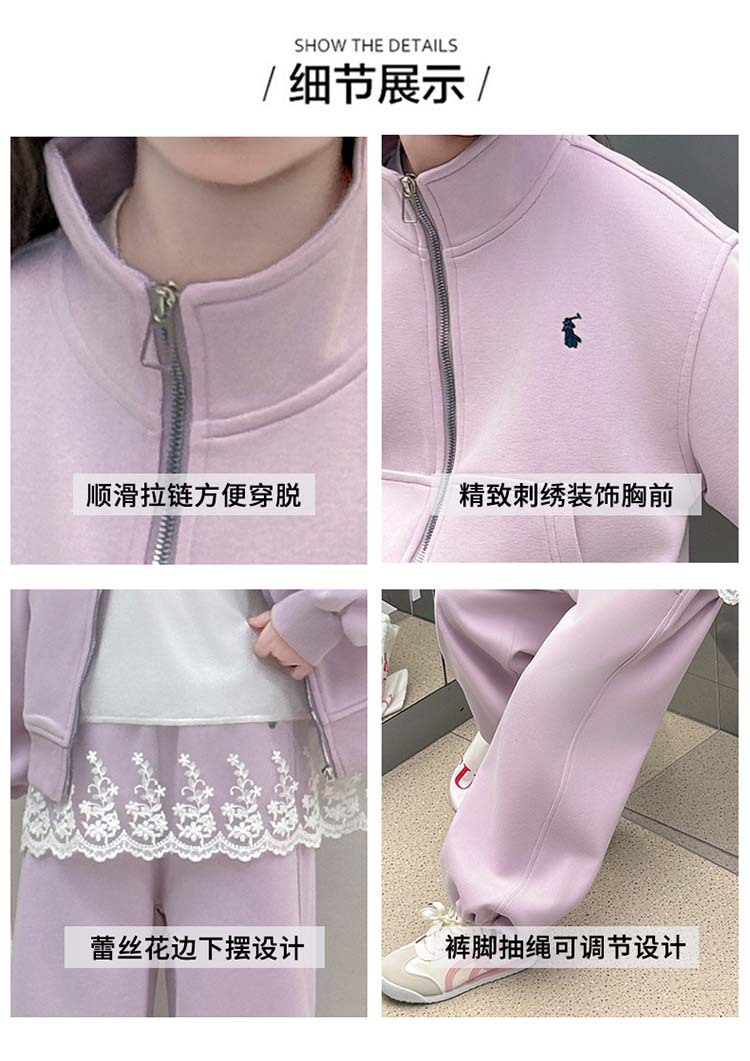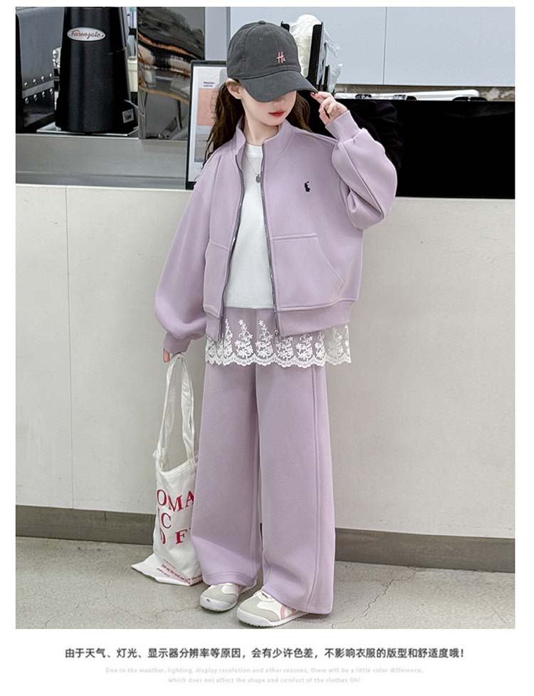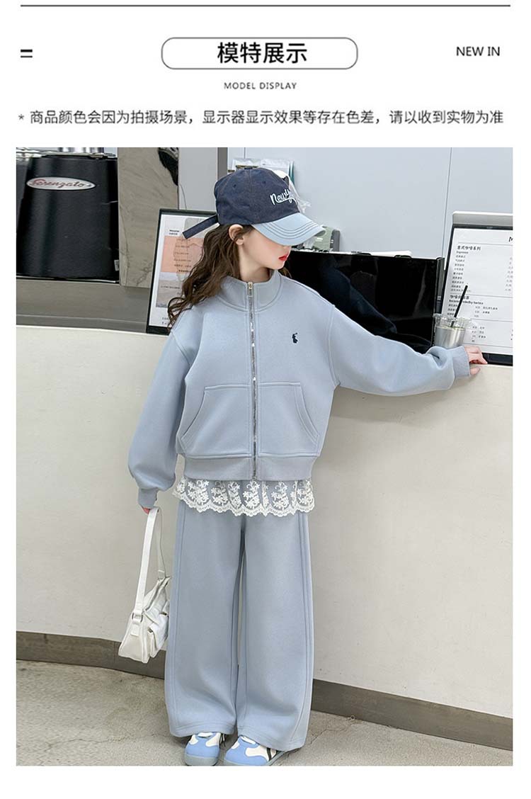 소녀의 봄과 가을 세트 2025 새로운 어린이 스포츠 자수 지퍼 자켓베이스 셔츠 캐주얼 바지 3 피스 세트스토어 가기