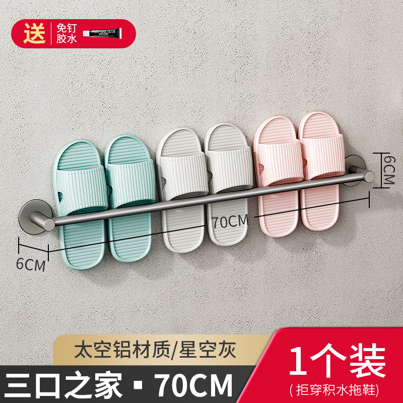 枪灰浴室拖鞋架壁挂免打孔卫生间置物架厕所鞋子收纳神器沥水架子