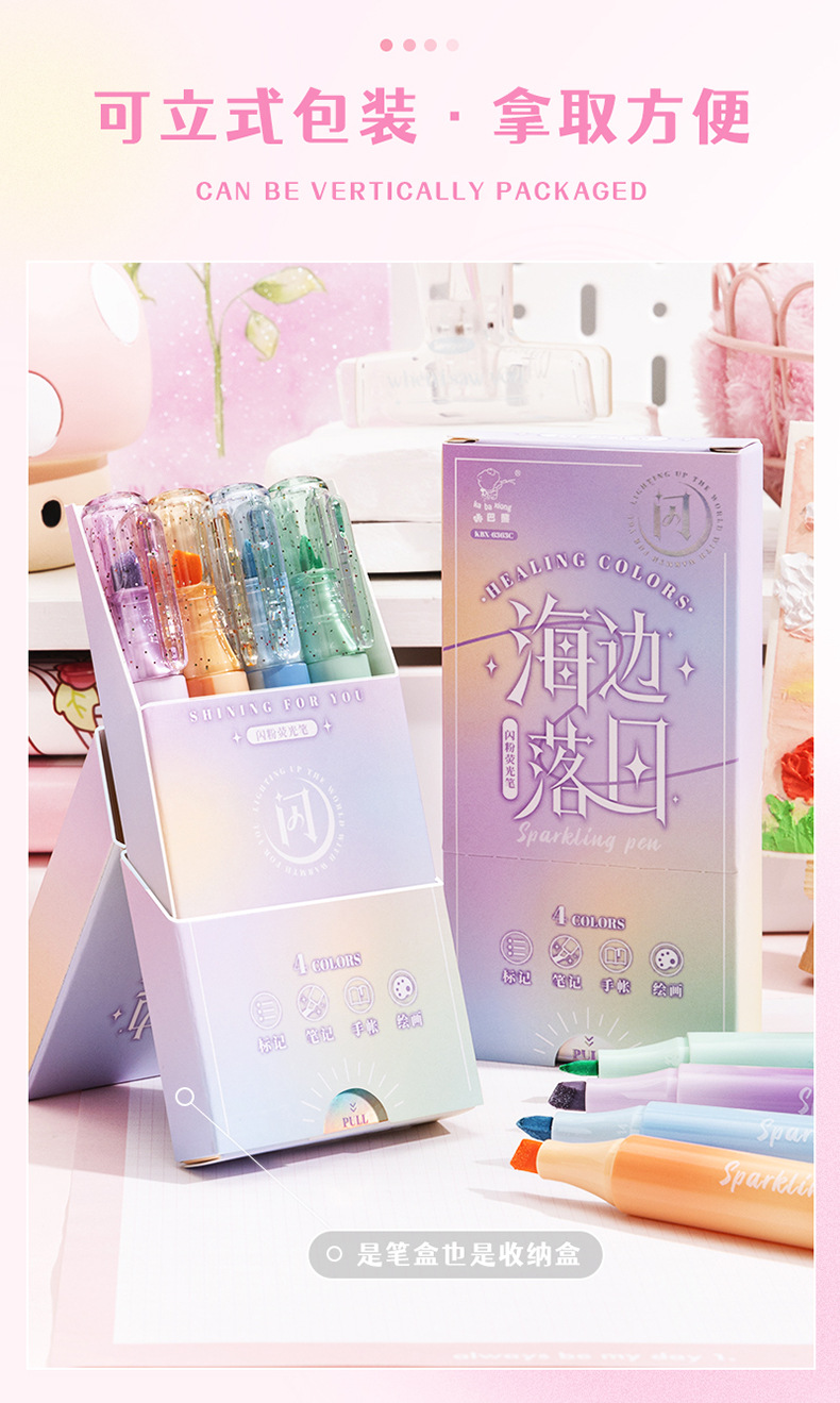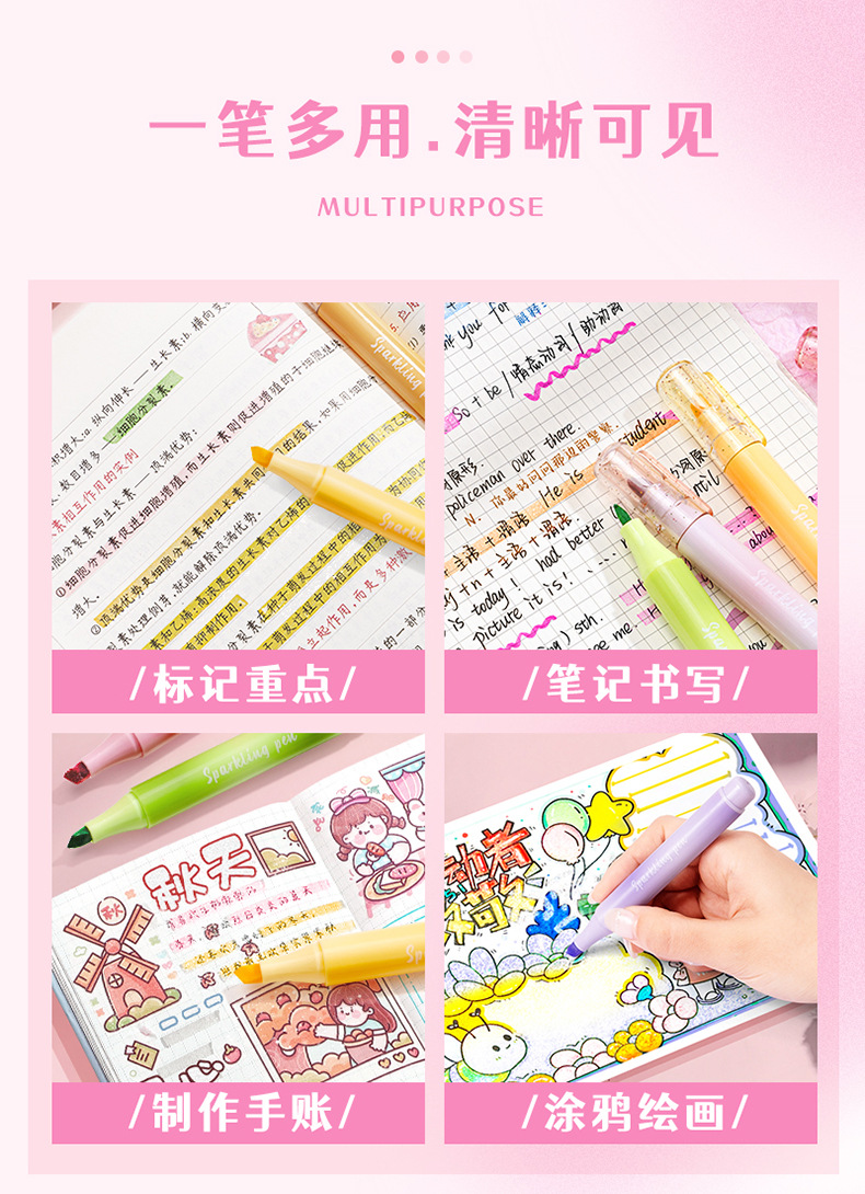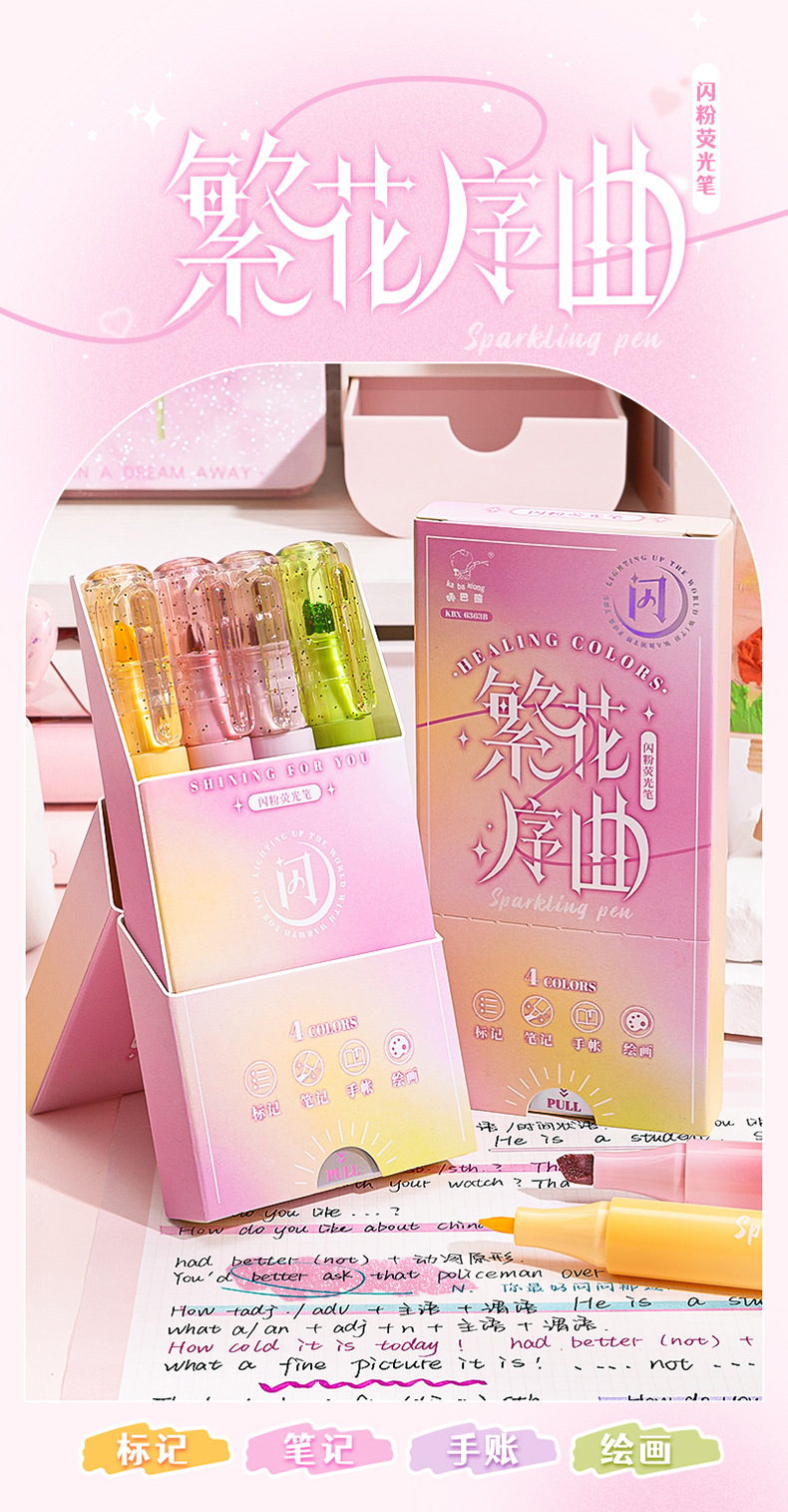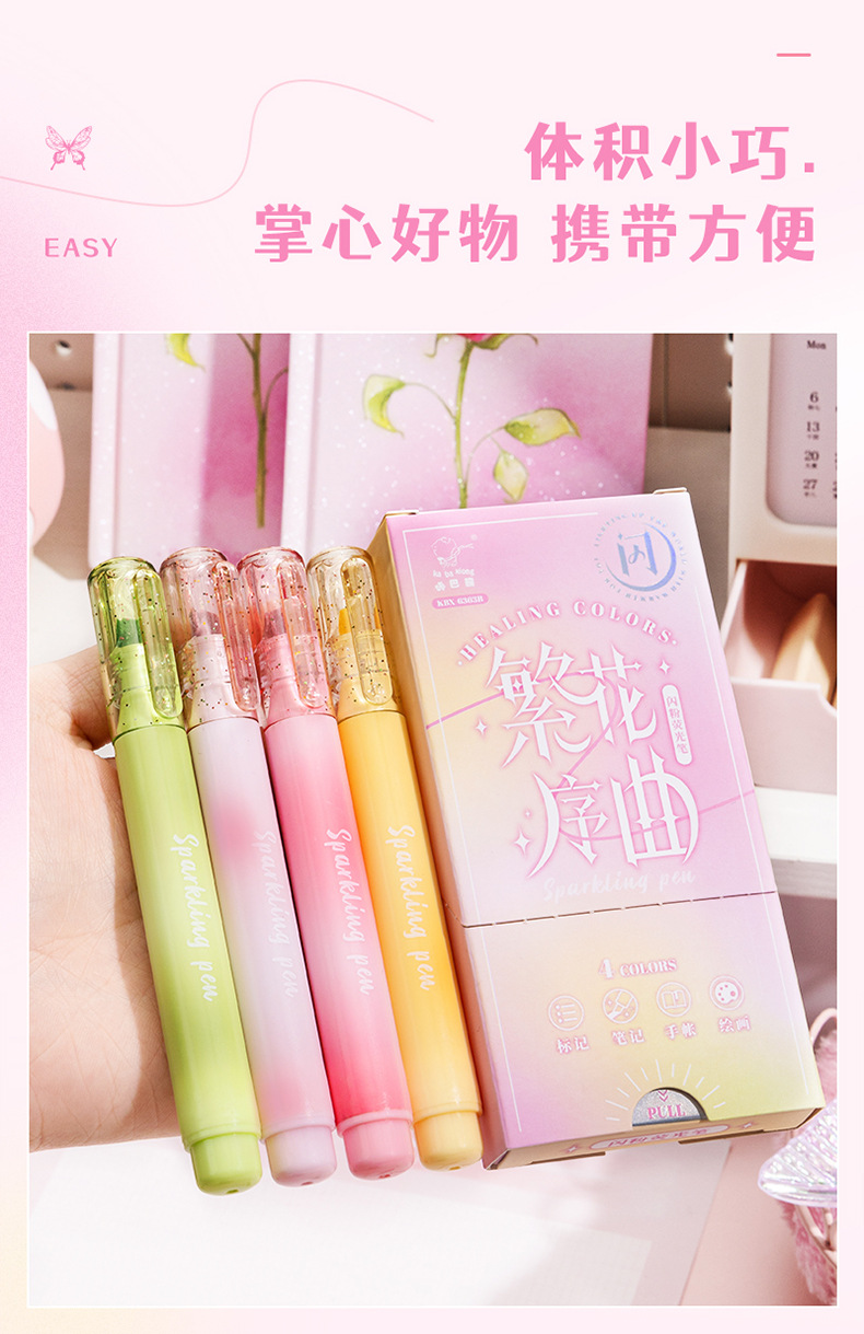 반짝이 높은 가치의 학생 특별 러프 마크 키 표시 펜 소녀 하트 소프트 헤드 컬러 핸드 계정 펜