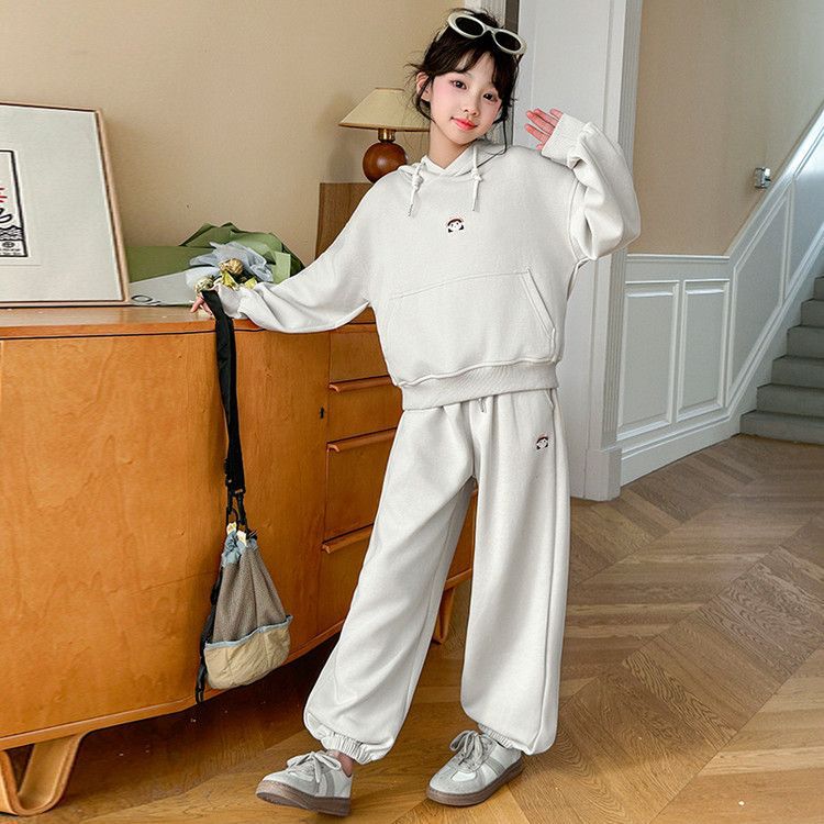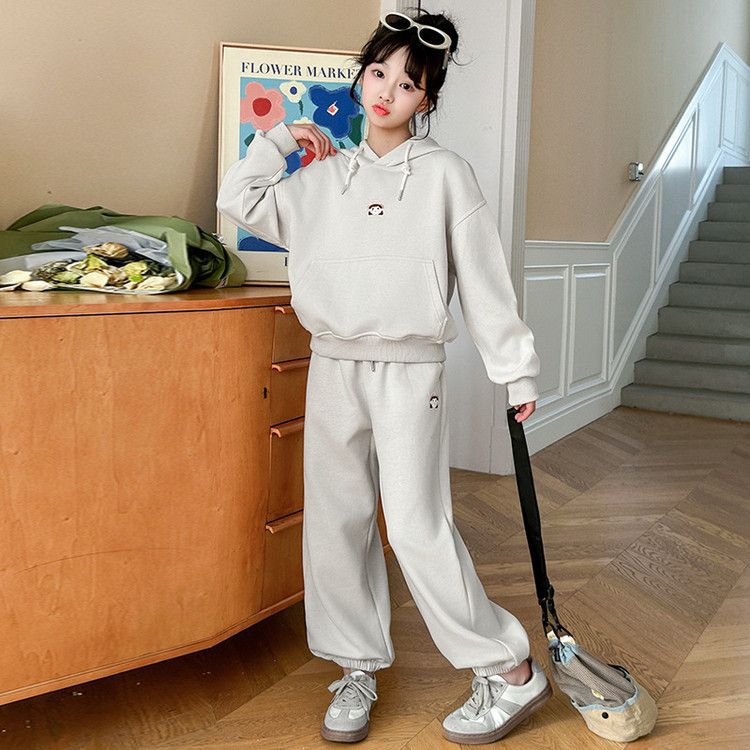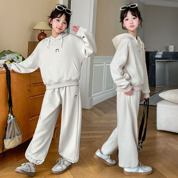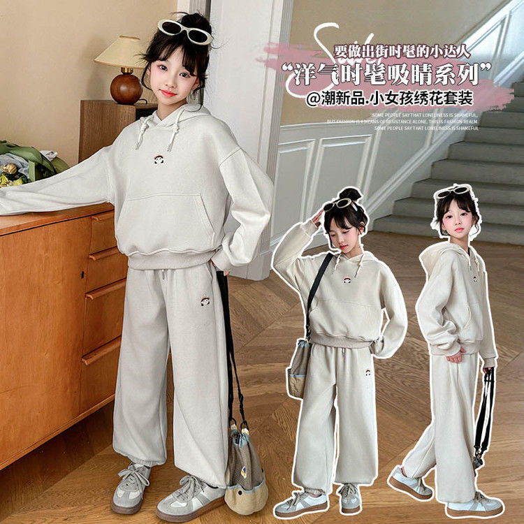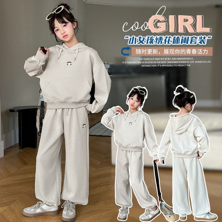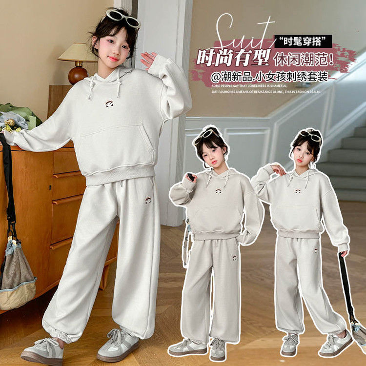 소녀의 봄과 가을 세트 2025 새로운 세련된 유행 유행 멋진 땀 캐주얼 바지 투피스 세트스토어 가기