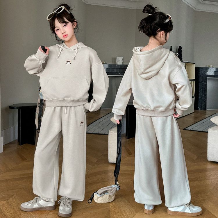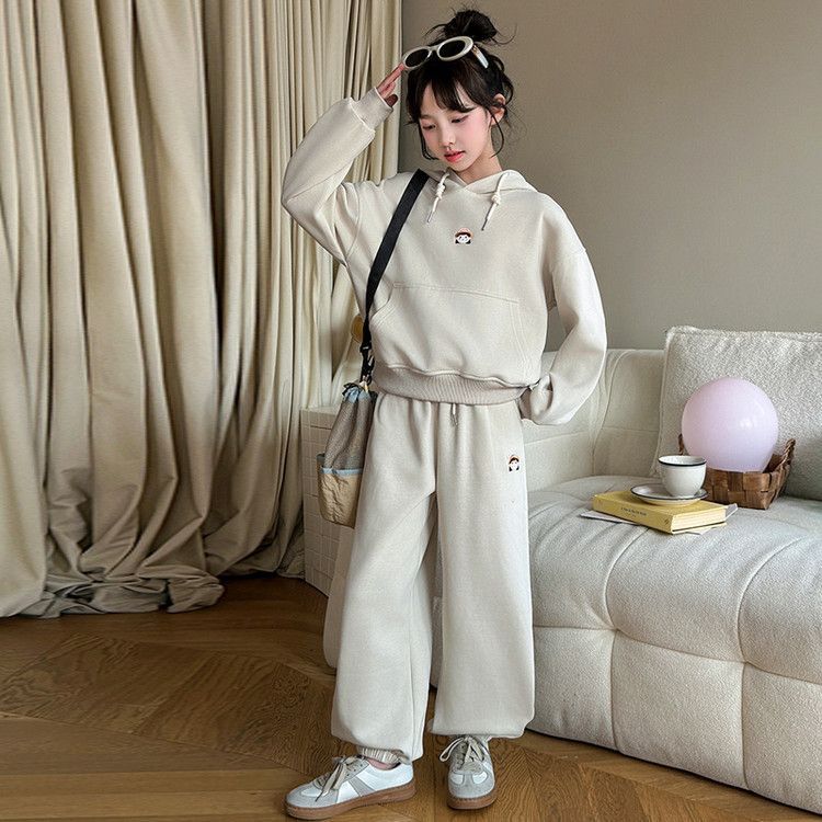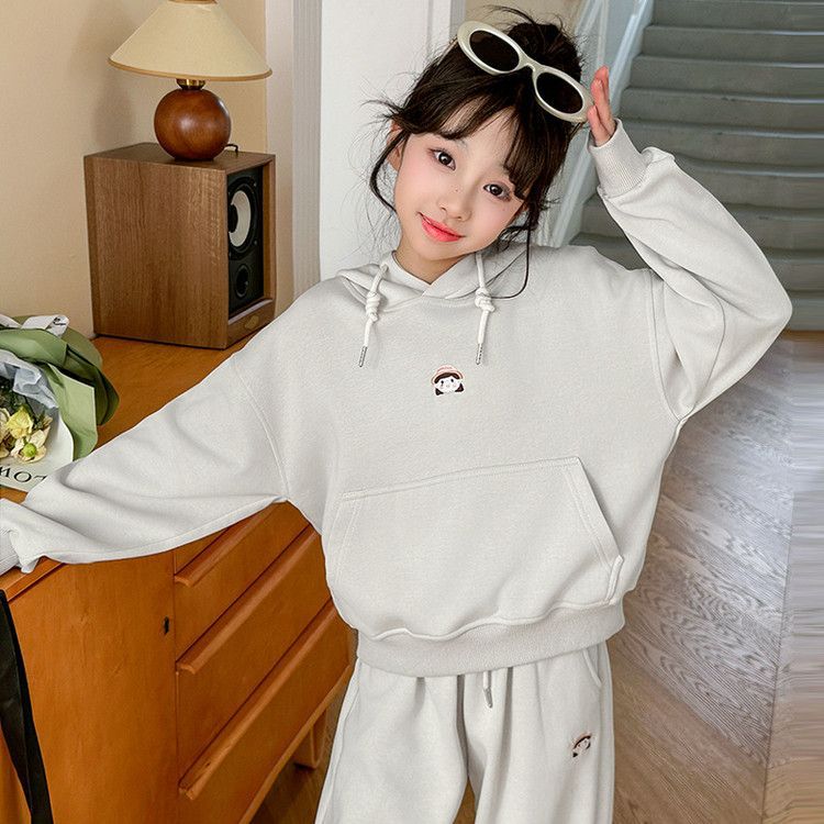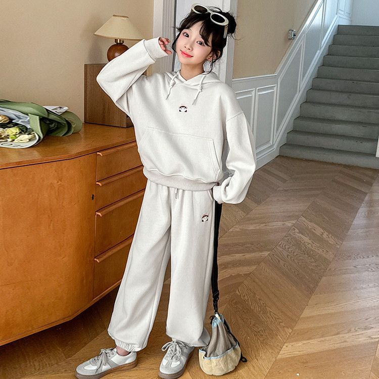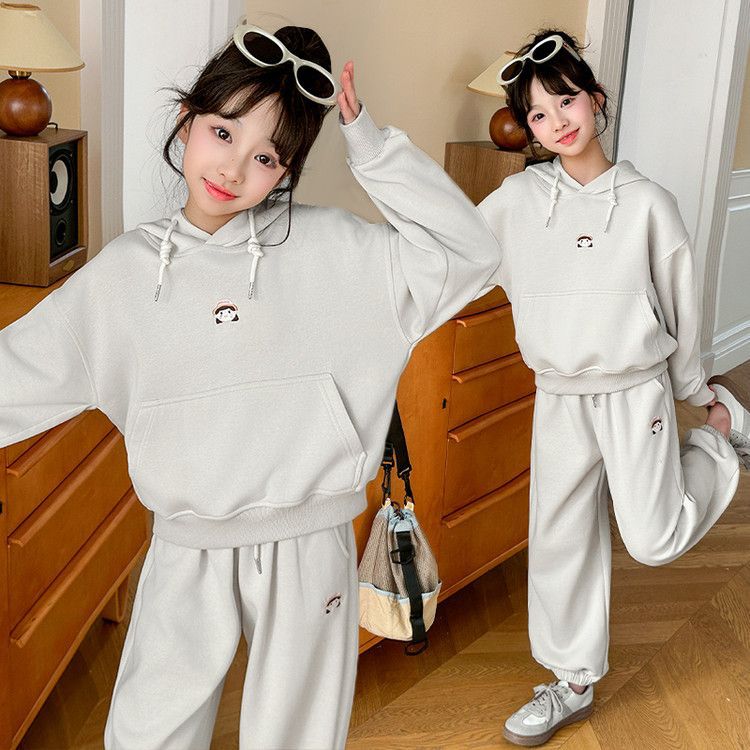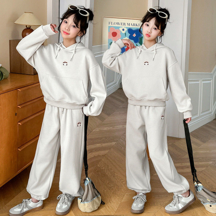 소녀의 봄과 가을 세트 2025 새로운 세련된 유행 유행 멋진 땀 캐주얼 바지 투피스 세트스토어 가기