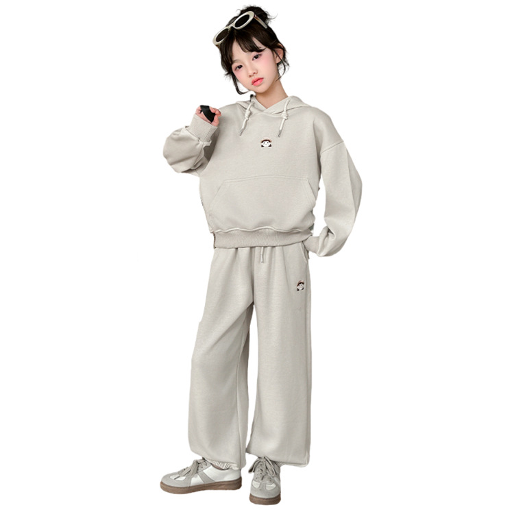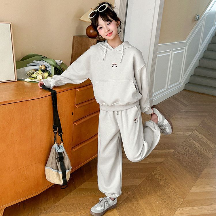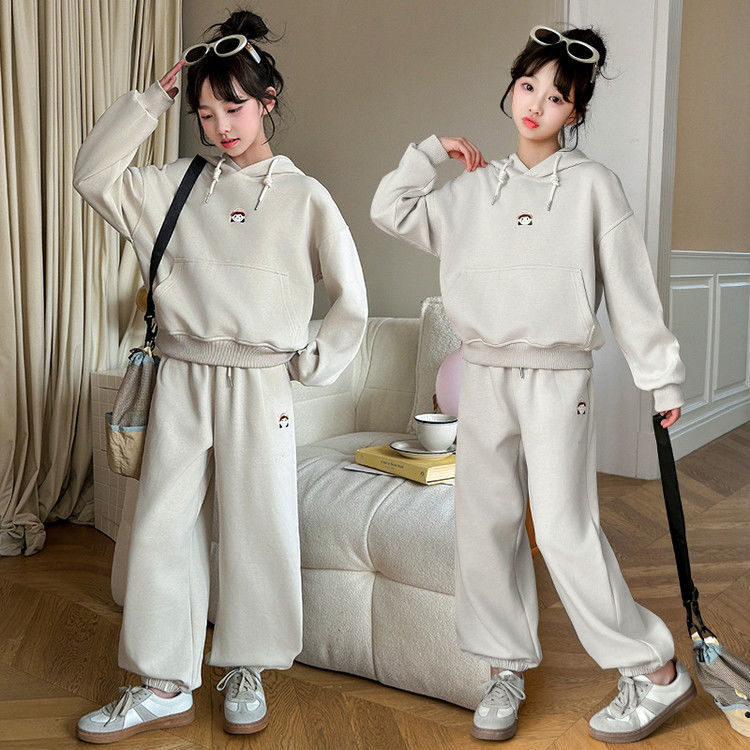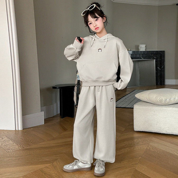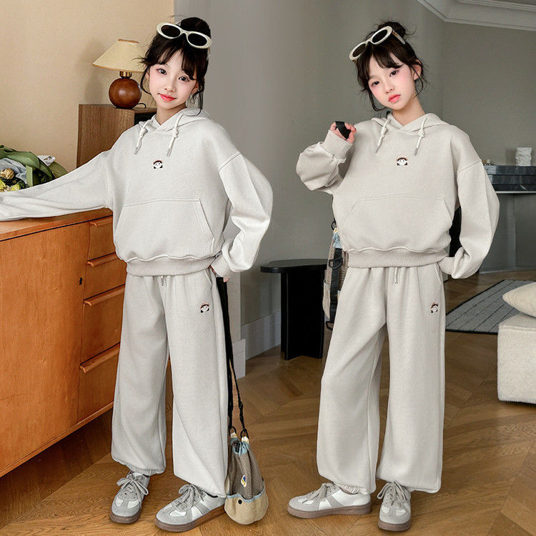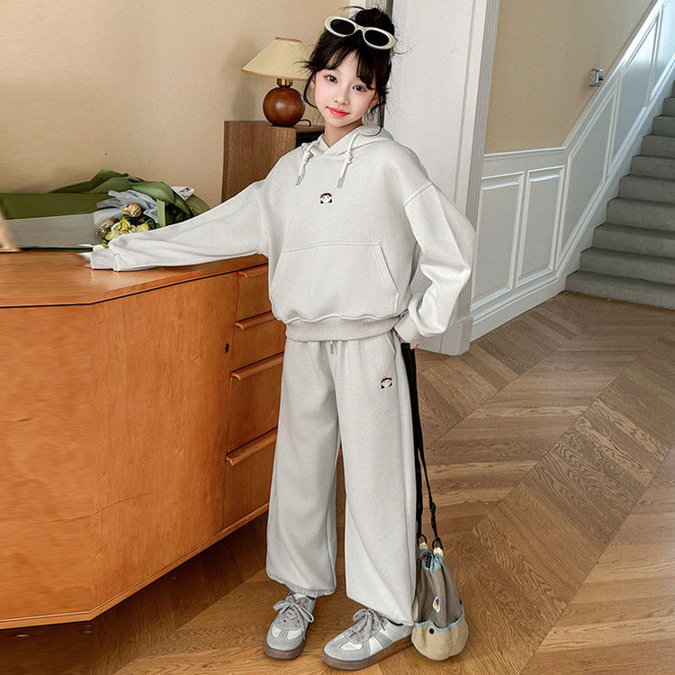 소녀의 봄과 가을 세트 2025 새로운 세련된 유행 유행 멋진 땀 캐주얼 바지 투피스 세트