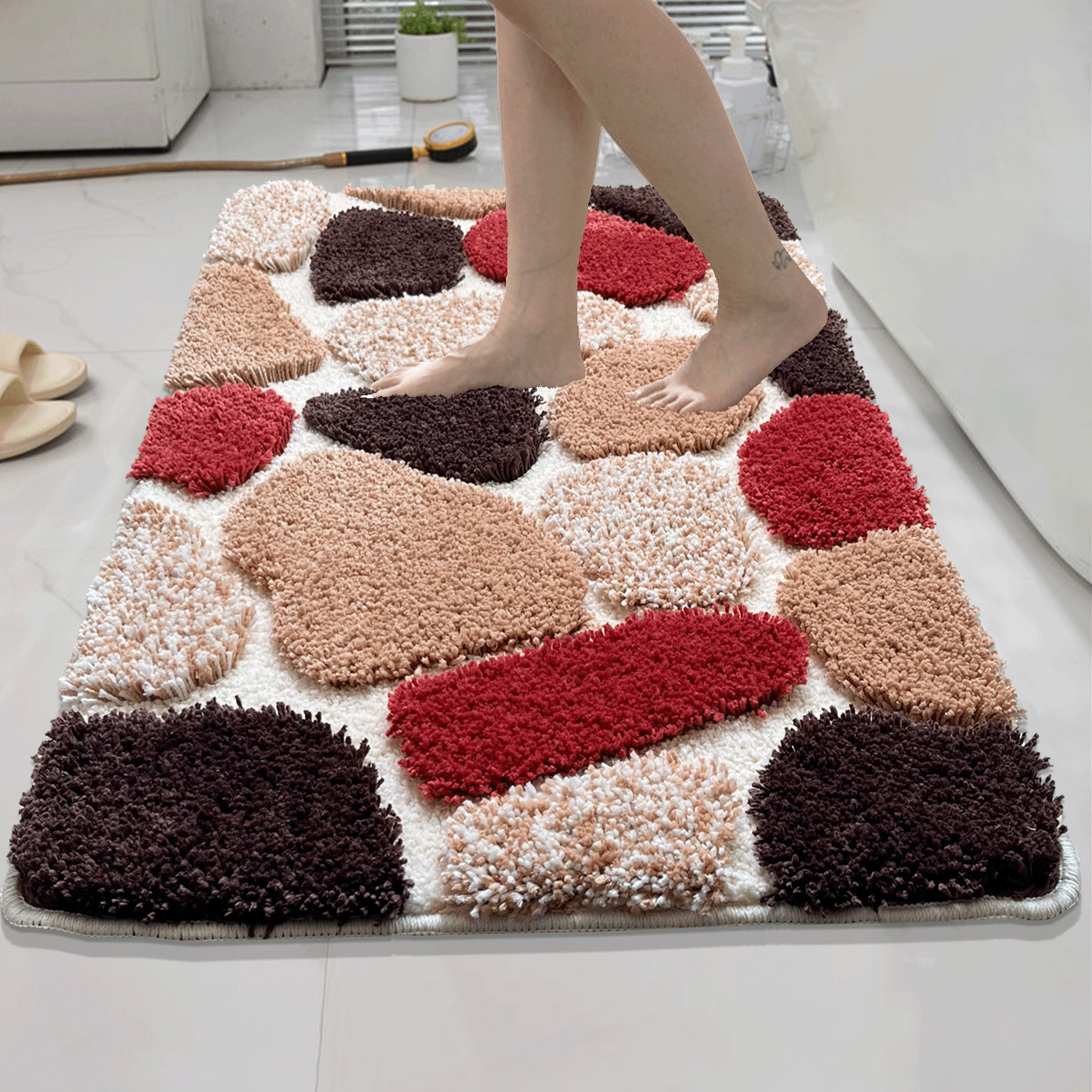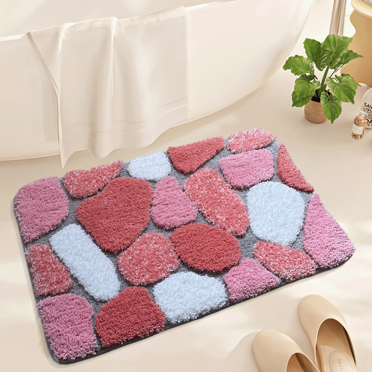 가벼운 고급 고급 석재 패턴 욕실 카펫 마이크로 파이버 욕조 흡수성 발 매트 3D 플러시 바닥 매트 침실
