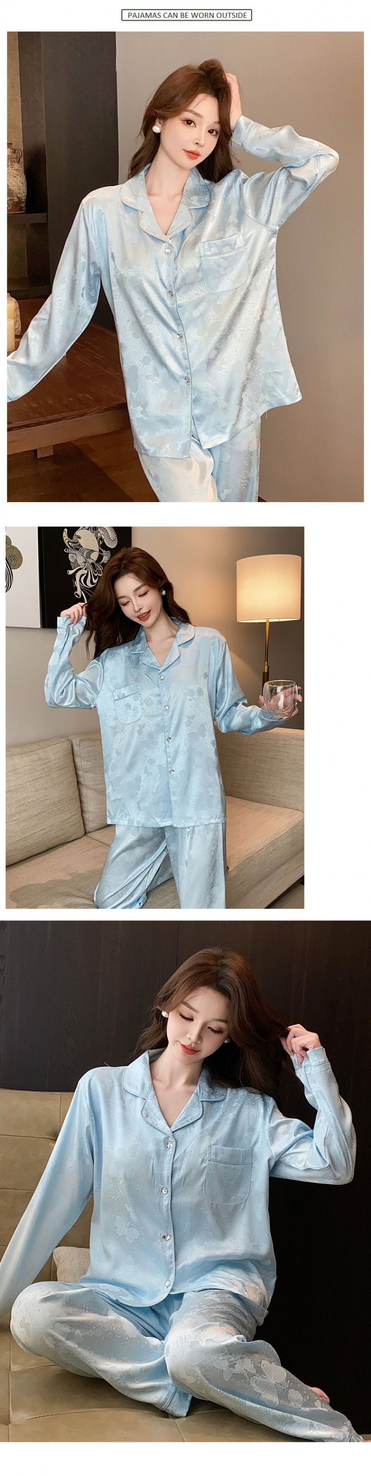 잠옷 여성의 봄과 여름 새로운 브래킷 패드 아이스 실크 자카드 달콤한 홈 옷 세트 25015 골드스토어 가기