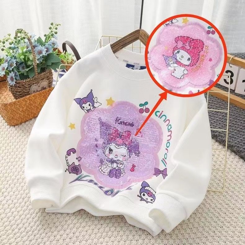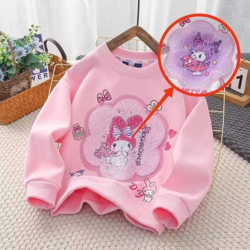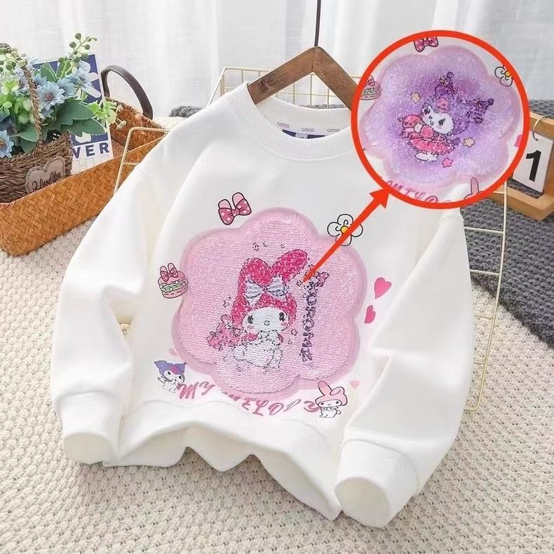 멜로디 스팽글 색상 변경 옷 소녀 봄과 가을 스웨터 2025 봄 새로운 어린이 탑 쿨로 미스토어 가기