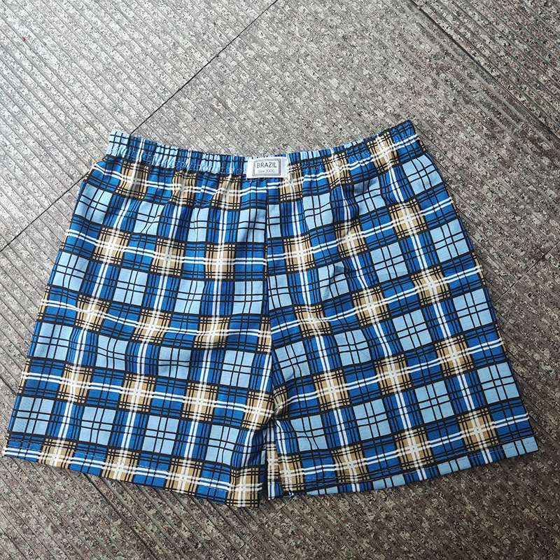 격자 무늬 알로 바지 남성 니트 코튼 복서 플러스 사이즈 청소년 복서 속옷 슬리핑 반바지 유행 남성 비치 바지