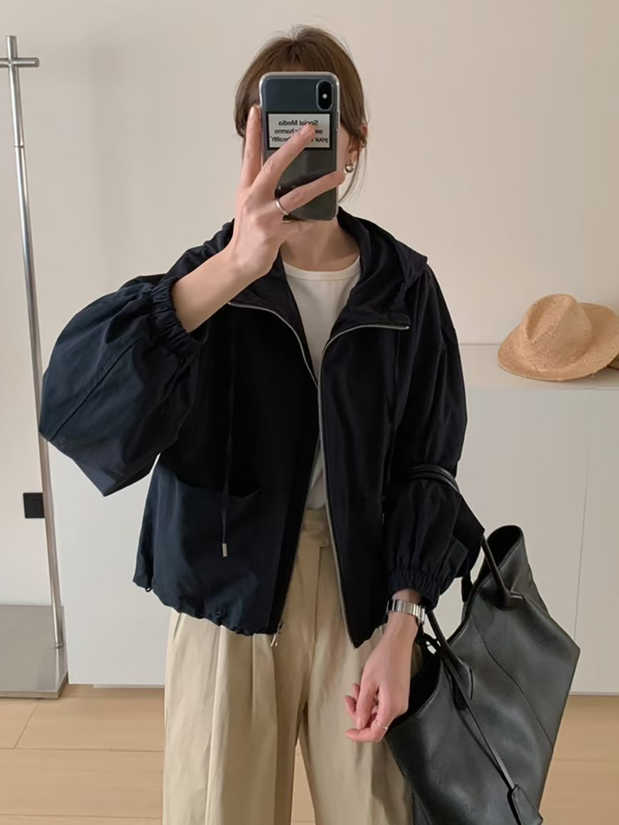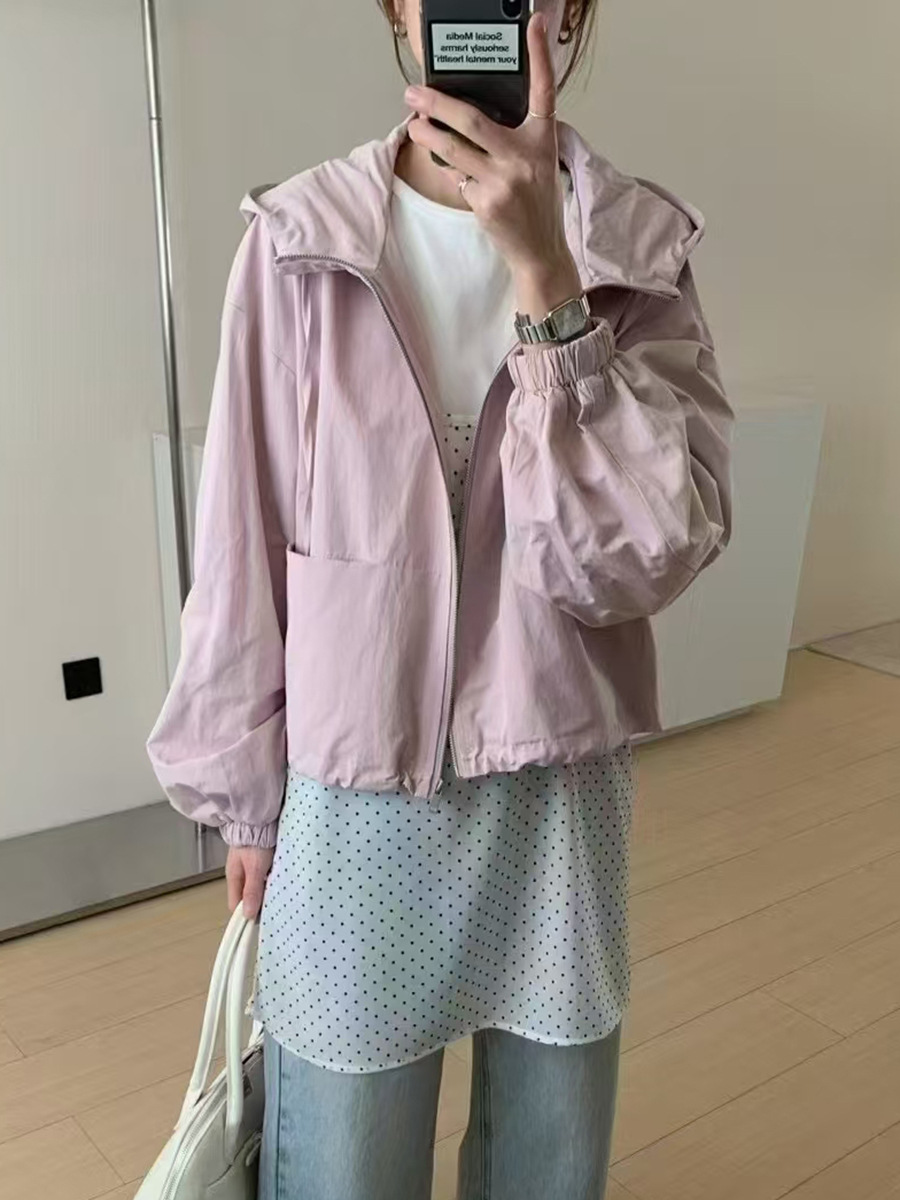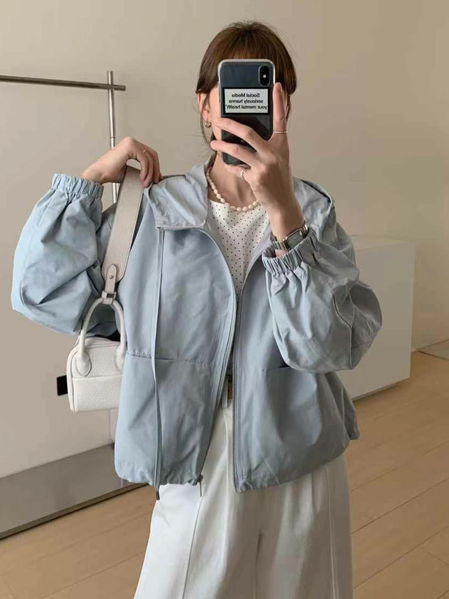 도매 2025 봄 새로운 후드 짧은 재킷 여성 한국 느슨한 슬림 캐주얼 재킷 디자인 센스 탑스토어 가기