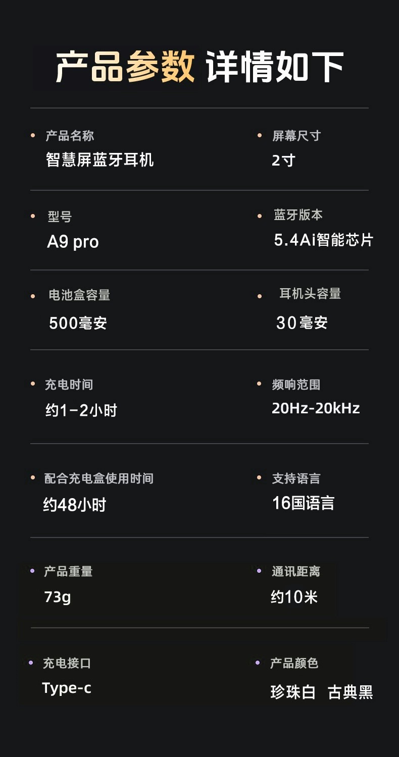 새로운 A9pro 블루투스 헤드셋 E11 헤드셋 다기능 터치 디스플레이 긴 내구성 더블 스테레오스토어 가기