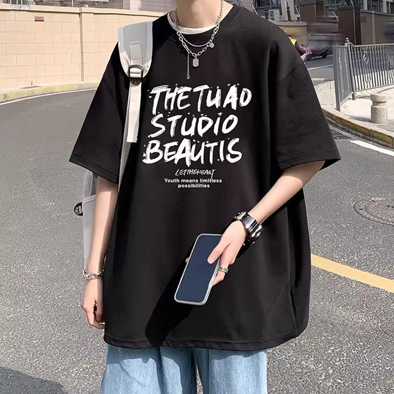 반소매 남성용 여름 티셔츠 새 미국식 여름 패션 브랜드 반소매 캐주얼 루즈 탑 남성용 티셔츠스토어 가기
