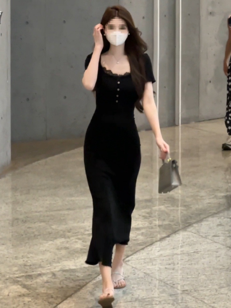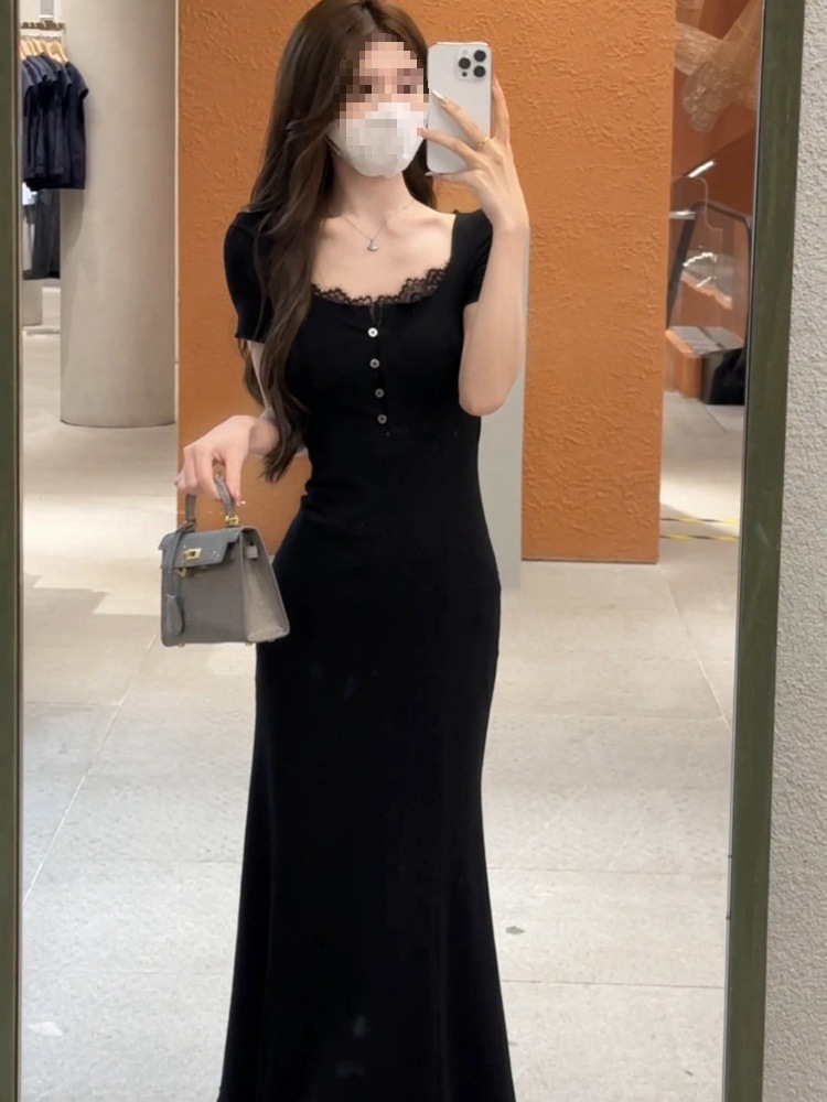 국경 도매 여름 프랑스 헵번 스타일 검은 반팔 원피스 여성의 작은 기질 피쉬 테일 엉덩이 원피스스토어 가기