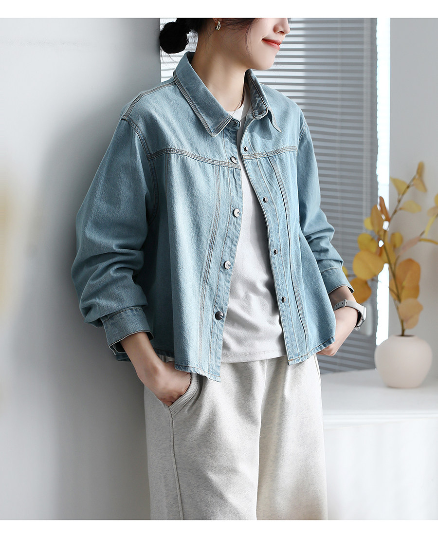 봄 새로운 짧은 데님 재킷 여성 랩 캐주얼 루즈 슬림 한국 스타일 셔츠 여자 6858