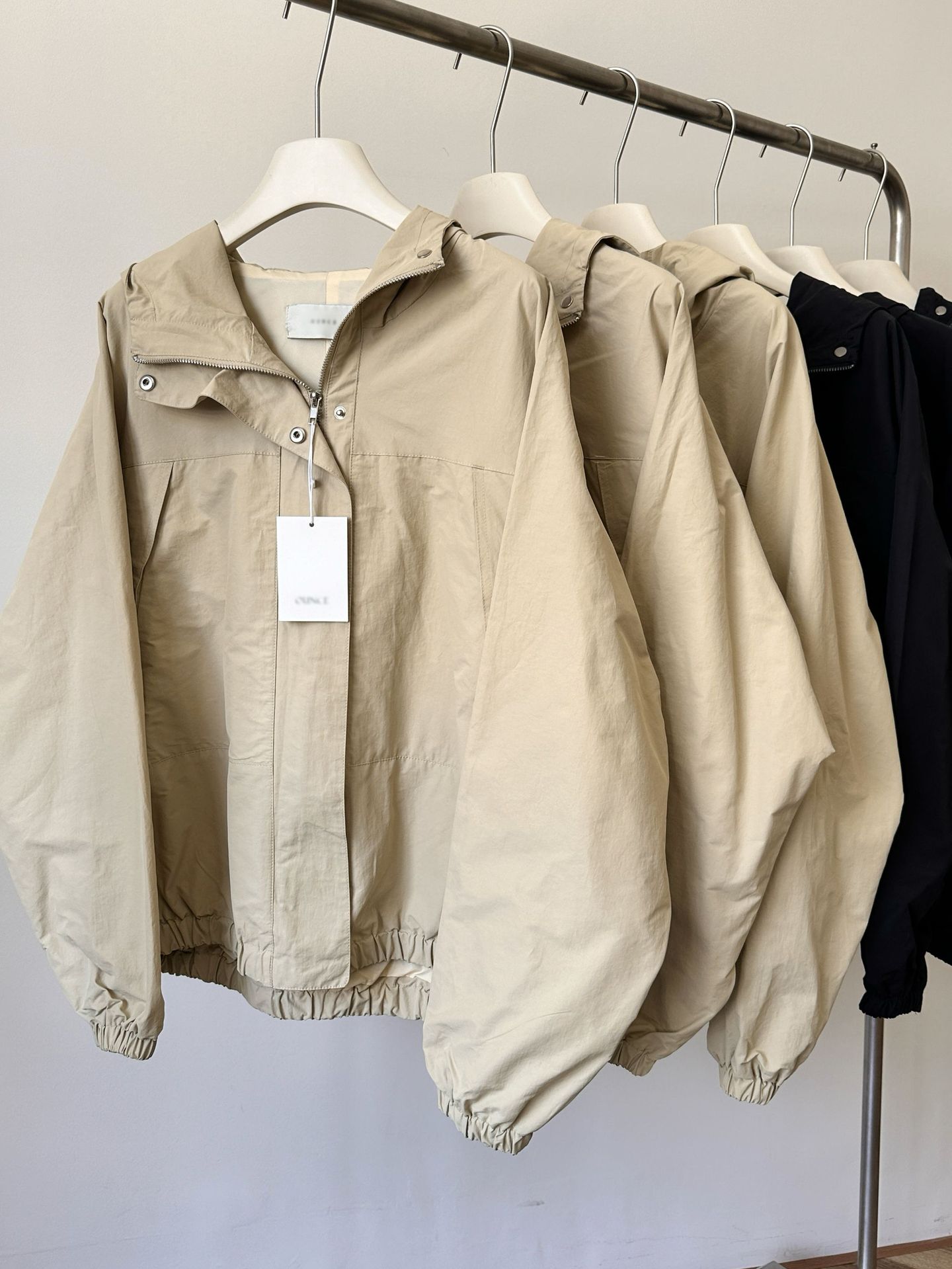 스팟 솔리드 컬러 후드 지퍼 재킷 2025 봄 여성 루즈 캐주얼 다목적 디자이너 재킷 oun*e
