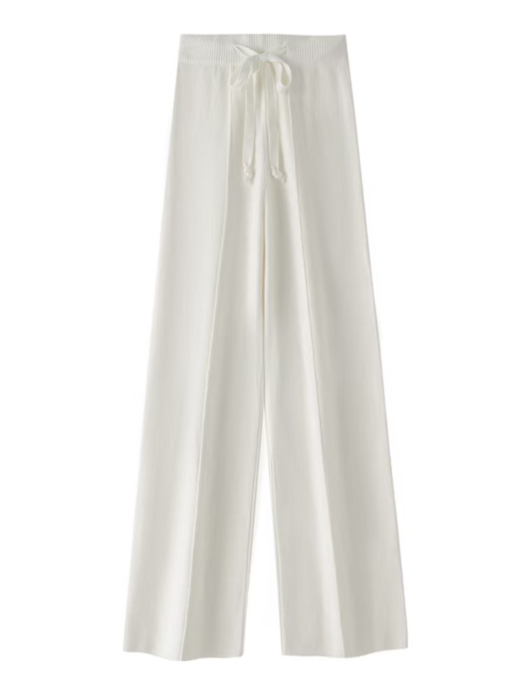 새로운 니트 높은 허리 캐주얼 와이드 레그 팬츠 여성용 슬리밍 스트레이트 레그 팬츠