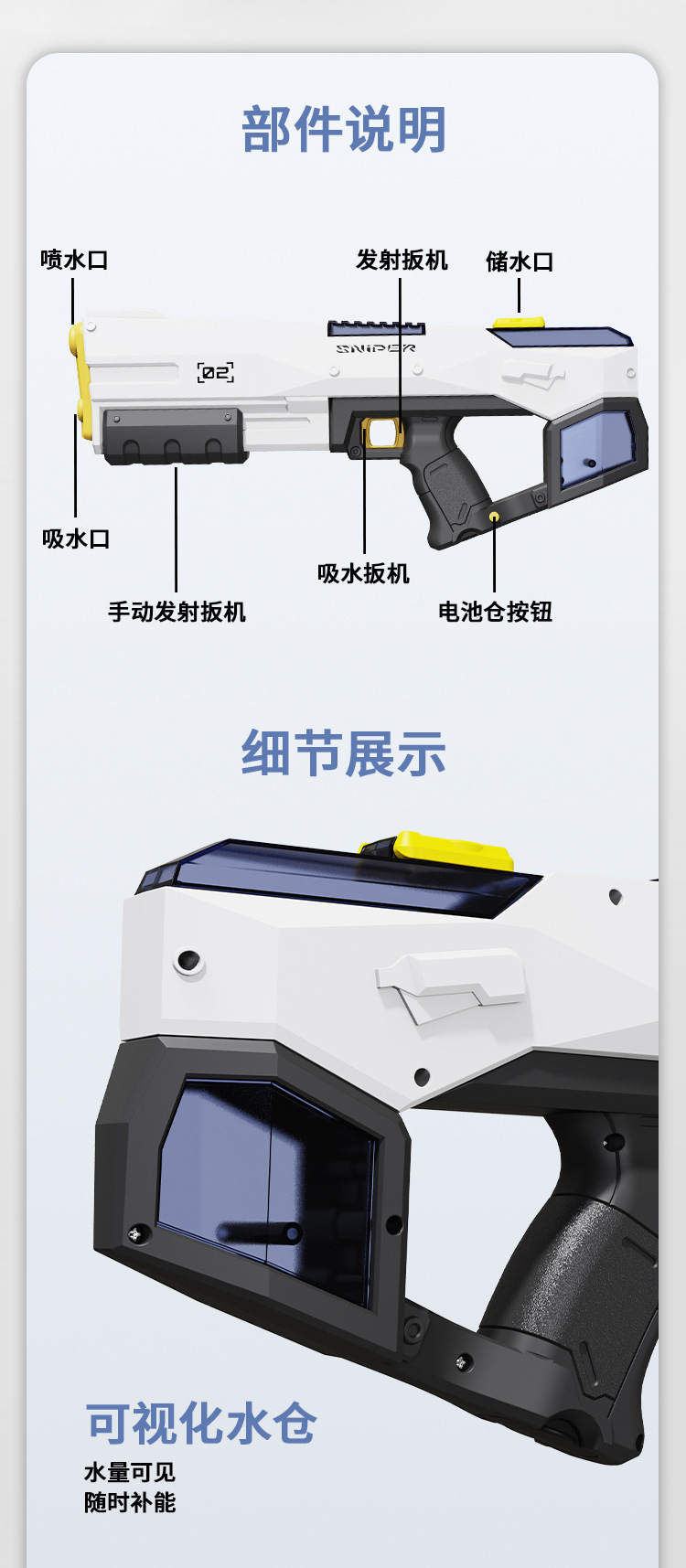 • [자동흡수/수동자동/다채로운 조명] 블루+더블렌즈 물탱크+총구 1420ML