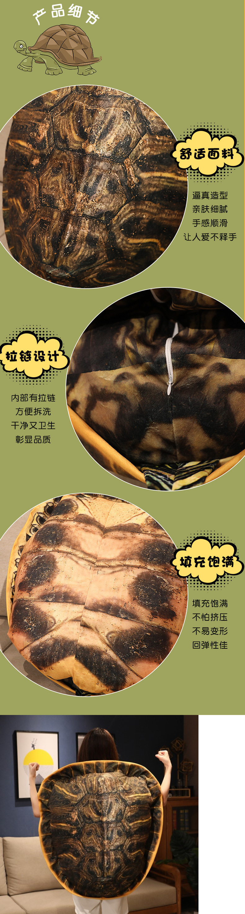 시뮬레이션 거북이 껍질 베개 웨어러블 인형 봉제 놀이 재미있는 거북이 쉘 조끼 쿠션 여자 친구 생일 선물