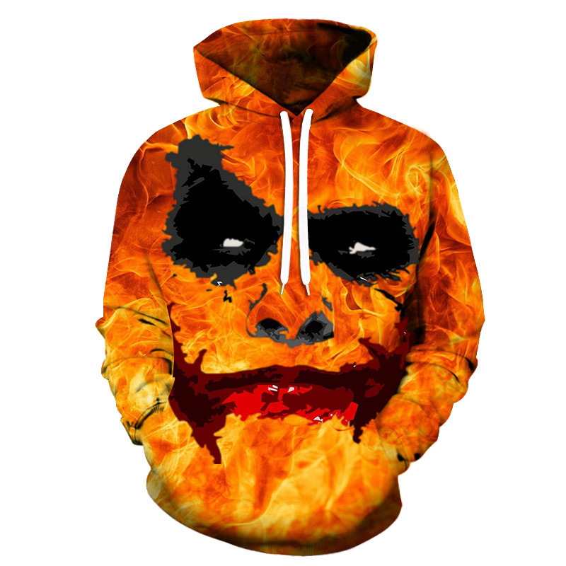 가을 2024 새로운 남성 캐주얼 스웨터 광대 성격 그림 3D 인쇄 후드