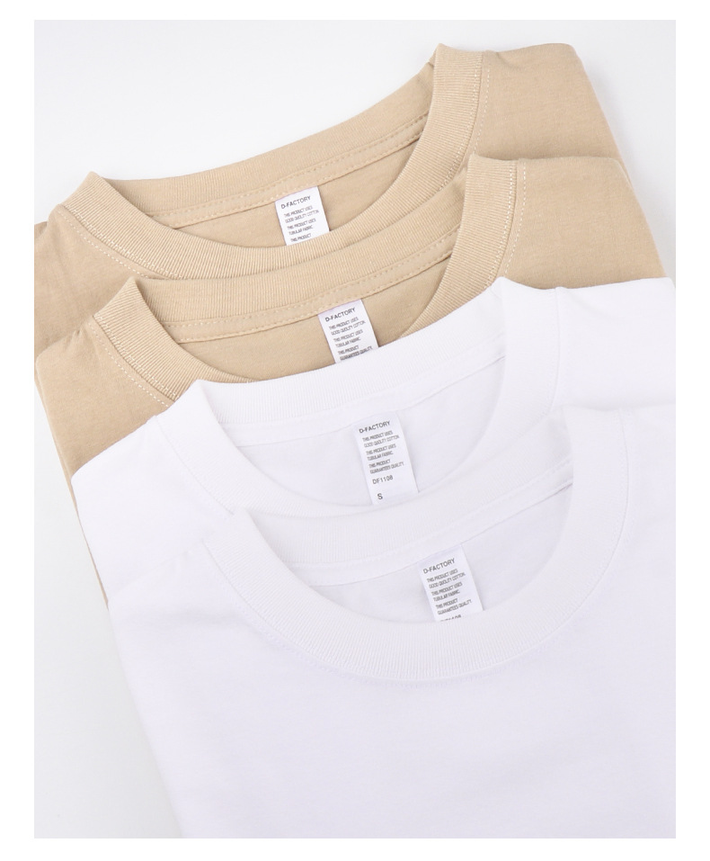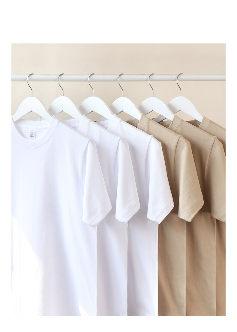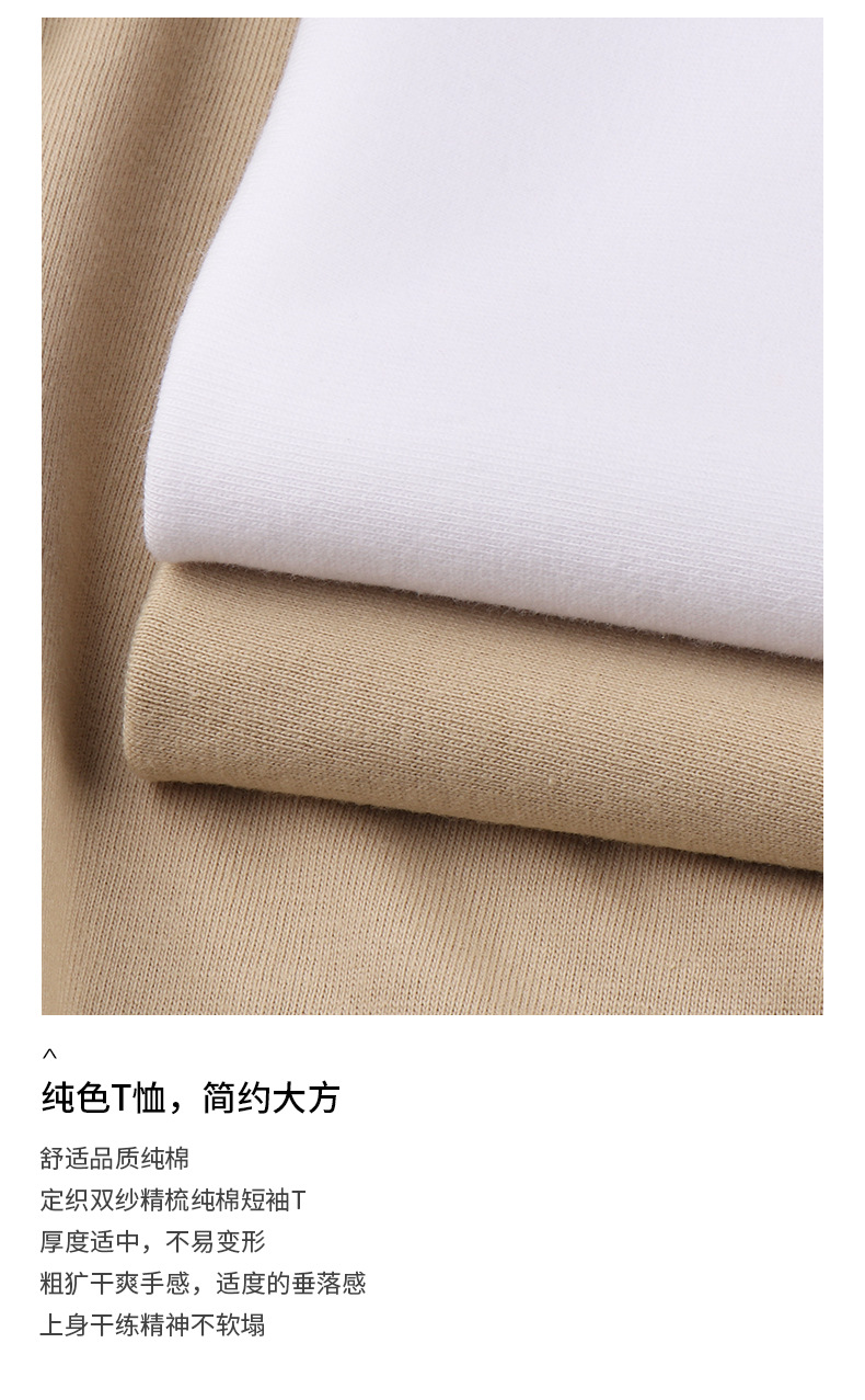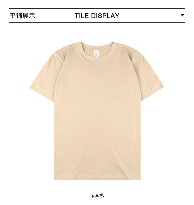봄 새로운 210g 단색 얇은면 짧은 소매 남성 티셔츠 카키 밀크 티 컬러 남성 및 여성 캐주얼 재킷스토어 가기