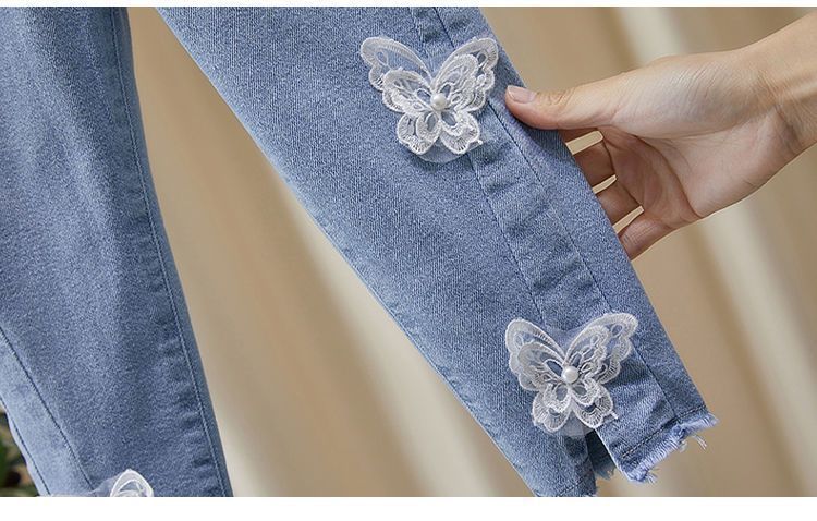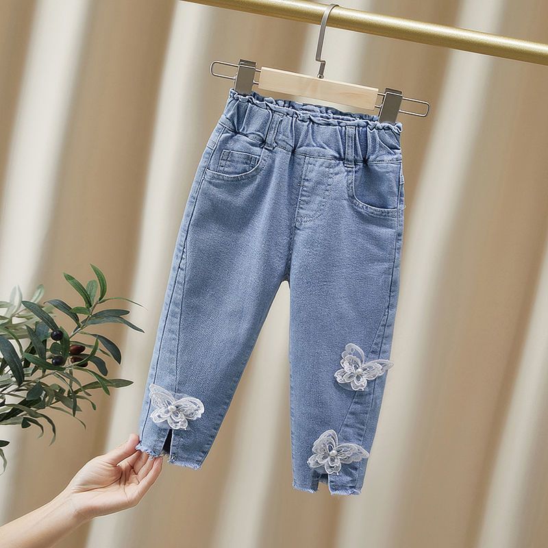 소녀 청바지 봄과 가을 새로운 한국 스타일 스트레칭 캐주얼 바지 아기 소녀의 활 청바지스토어 가기