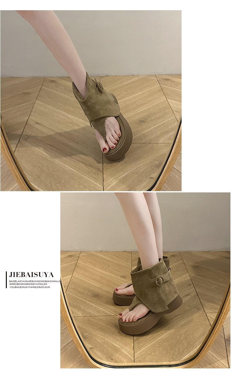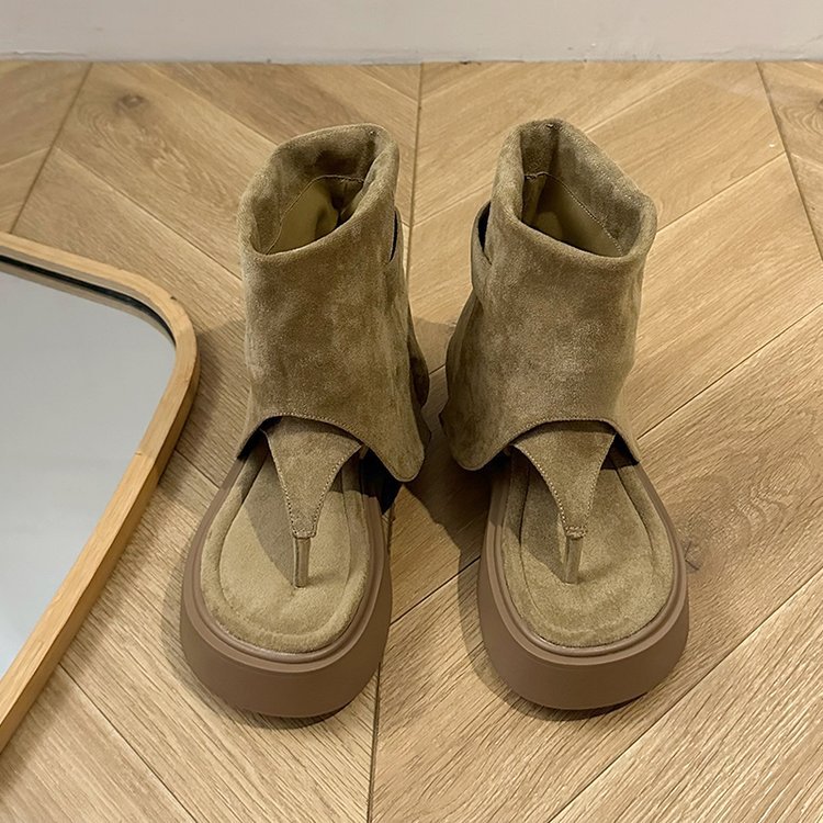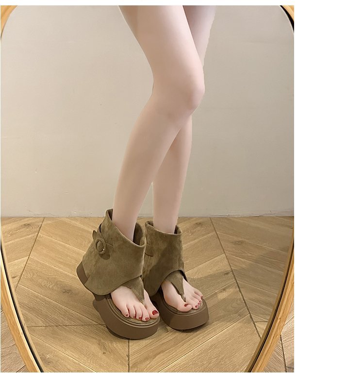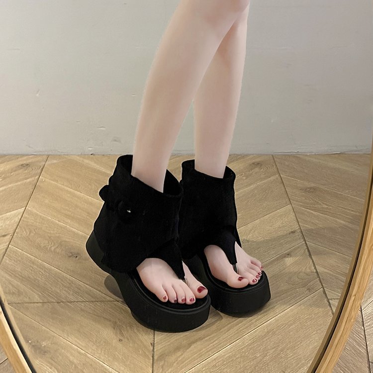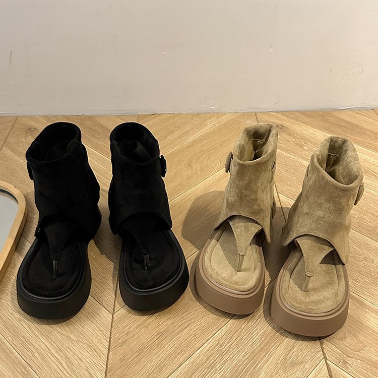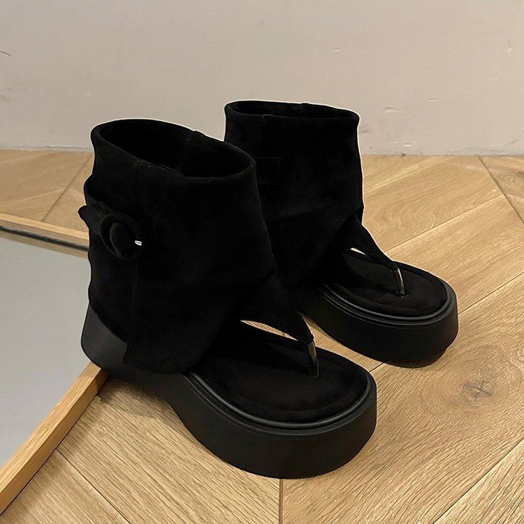 [아마노] 클립 발가락 샌들 여자 2025 년 새 여름 오픈 발가락 샌들 두꺼운 바닥 바지 부츠 니치 웨스턴 부츠