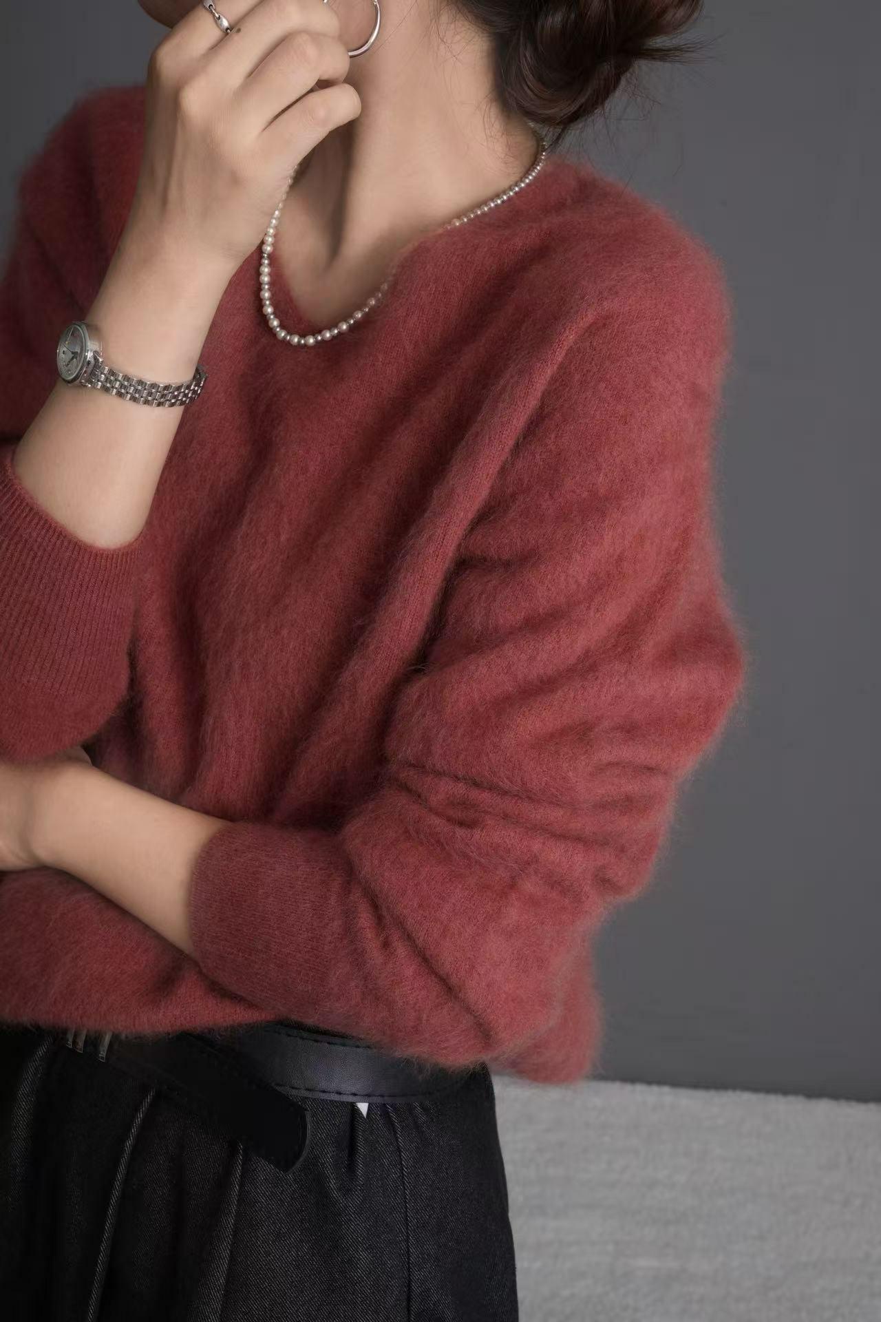 拉毛毛衣到货后有浮毛是正常现象,洗下水就好了。因在运输过程中的挤压会把拉毛压实,挂起来在阴凉处自然晾一小时会自动回蓬,手感更好!
